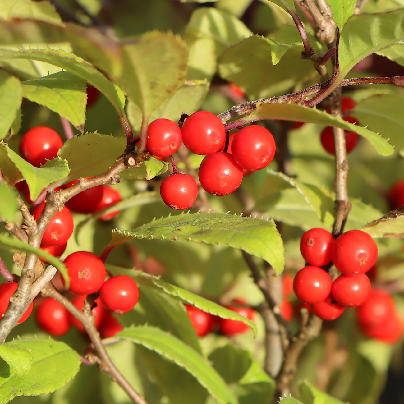 Im Herbst leuchten die Früchte der Japanischen Winterbeere noch unter dem grün bis dunkelviolett gefärbtem Herbstlaub hervor. Anders als bei den verwandten Stechpalmen verliert die Winterbeere ihr nicht stechendes Laub, das Rot der Beeren gibt dann einen wunderschönen Farbakzent in der Winterzeit. Im Frühjahr treibt sie dann mit zarten, kleinen Blättern in hellem Grün frisch aus. Der natürliche Habitus kommt der Bonsaigestaltung sehr zugute, so dass durch ein wenig Draht oder lediglich per Rückschnitt vom Literat bis zur Waldgestaltung alles möglich ist.
