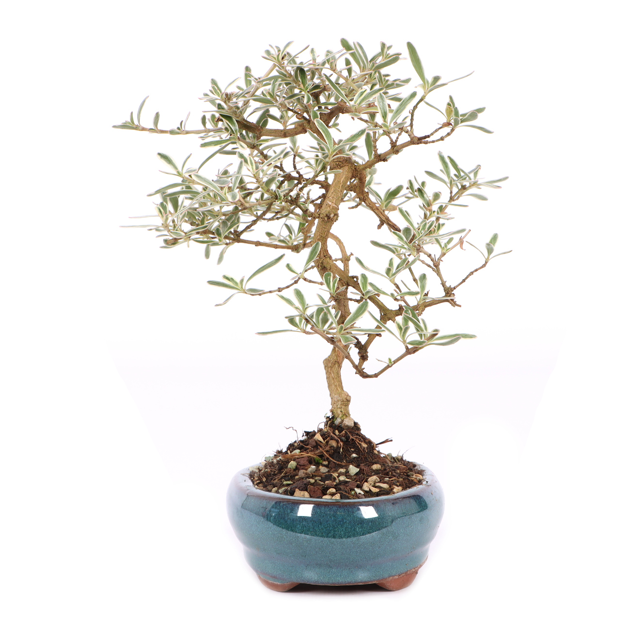 Koprosma ist eine Pflanzengattung mit über 100 verschiedenen Arten, die in Südost-Asien, Australien und den pazifischen Inseln verbreitet ist. Bei Koprosma ‘Variegata‘ handelt es sich um einen Hybriden, der aus einer Kreuzung der in Neuseeland beheimateten Coprosma acerosa und Coprosma repens hervorgegangen ist. Die Koprosma ‘Variegata‘ ist immergrün und hat lanzettliche dunkle Blätter, die durch den weißen und teilweise leicht rosa gefärbten Rand sehr dekorativ sind. Dadurch ist sie zu einer beliebten Zimmerpflanze geworden, die auch häufig als Bonsai angeboten wird.