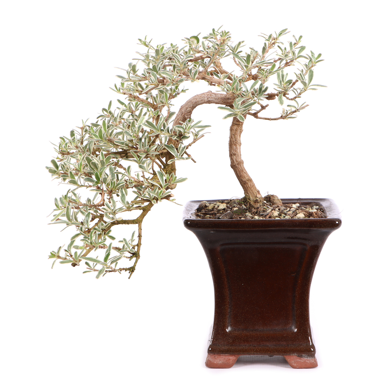 Koprosma ist eine Pflanzengattung mit über 100 verschiedenen Arten, die in Südost-Asien, Australien und den pazifischen Inseln verbreitet ist. Bei Koprosma ‘Variegata‘ handelt es sich um einen Hybriden, der aus einer Kreuzung der in Neuseeland beheimateten Coprosma acerosa und Coprosma repens hervorgegangen ist. Die Koprosma ‘Variegata‘ ist immergrün und hat lanzettliche dunkle Blätter, die durch den weißen und teilweise leicht rosa gefärbten Rand sehr dekorativ sind. Dadurch ist sie zu einer beliebten Zimmerpflanze geworden, die auch häufig als Bonsai angeboten wird.