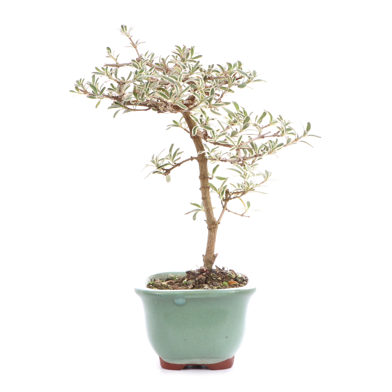 Koprosma ist eine Pflanzengattung mit über 100 verschiedenen Arten, die in Südost-Asien, Australien und den pazifischen Inseln verbreitet ist. Bei Koprosma ‘Variegata‘ handelt es sich um einen Hybriden, der aus einer Kreuzung der in Neuseeland beheimateten Coprosma acerosa und Coprosma repens hervorgegangen ist. Die Koprosma ‘Variegata‘ ist immergrün und hat lanzettliche dunkle Blätter, die durch den weißen und teilweise leicht rosa gefärbten Rand sehr dekorativ sind. Dadurch ist sie zu einer beliebten Zimmerpflanze geworden, die auch häufig als Bonsai angeboten wird.