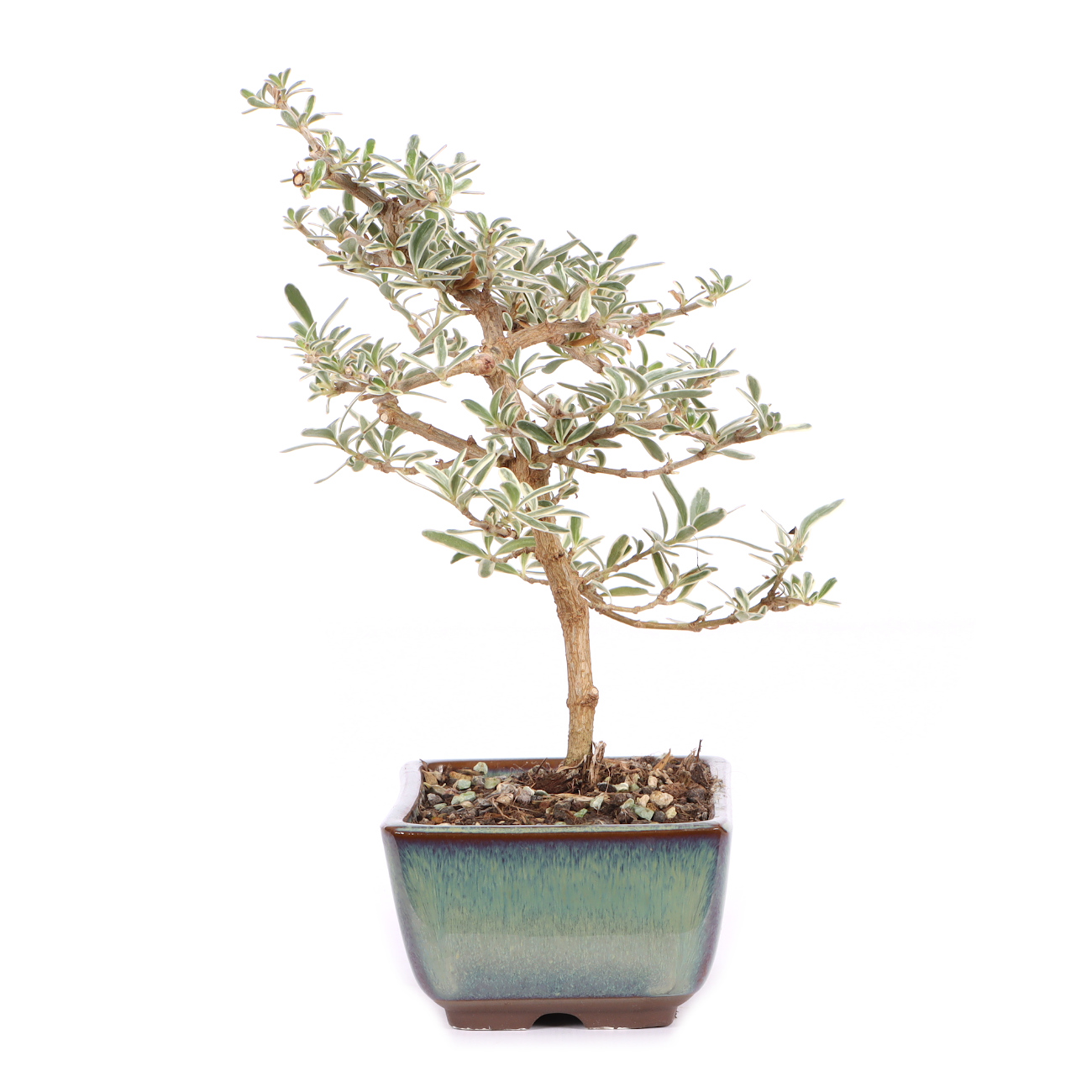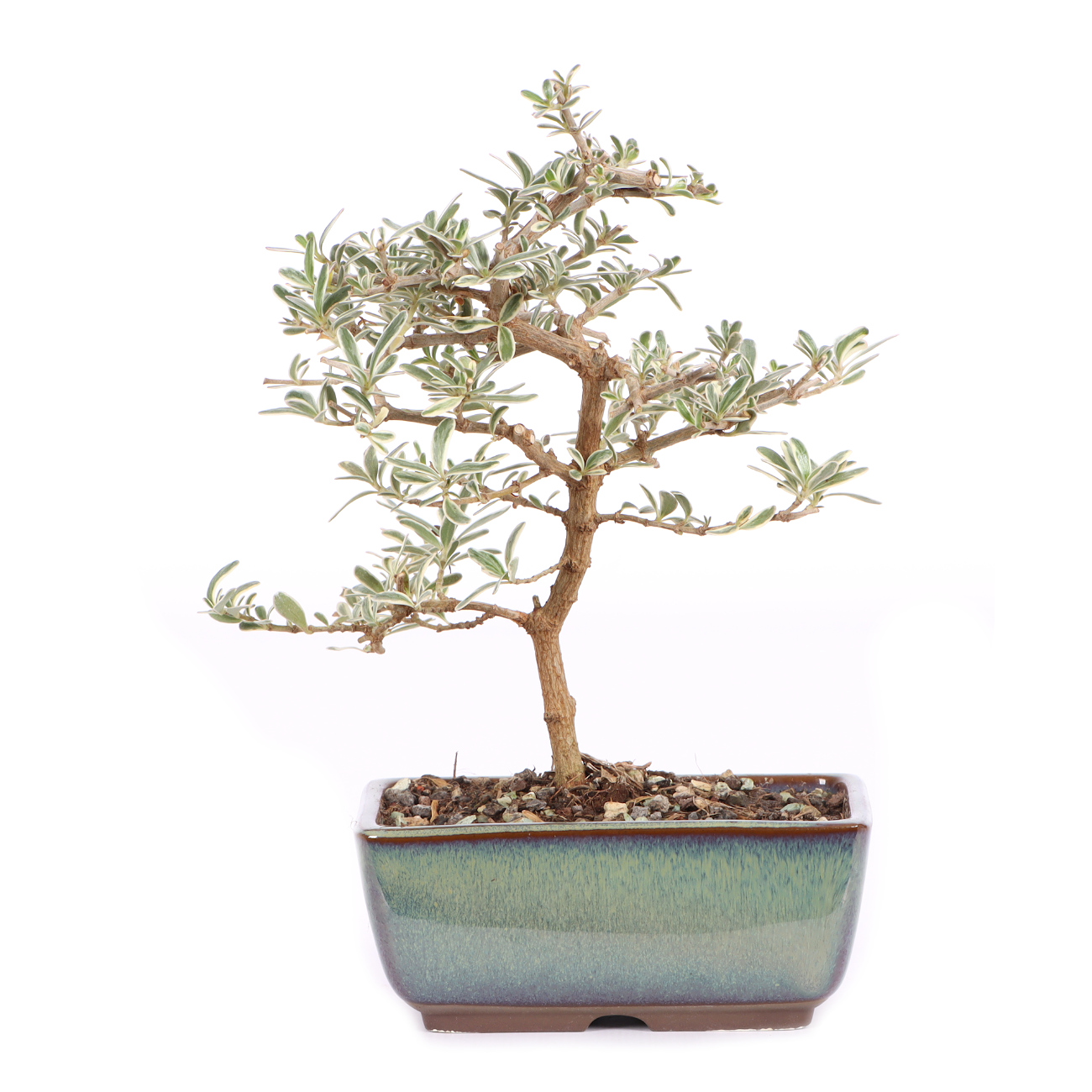 Koprosma ist eine Pflanzengattung mit über 100 verschiedenen Arten, die in Südost-Asien, Australien und den pazifischen Inseln verbreitet ist. Bei Koprosma ‘Variegata‘ handelt es sich um einen Hybriden, der aus einer Kreuzung der in Neuseeland beheimateten Coprosma acerosa und Coprosma repens hervorgegangen ist. Die Koprosma ‘Variegata‘ ist immergrün und hat lanzettliche dunkle Blätter, die durch den weißen und teilweise leicht rosa gefärbten Rand sehr dekorativ sind. Dadurch ist sie zu einer beliebten Zimmerpflanze geworden, die auch häufig als Bonsai angeboten wird.