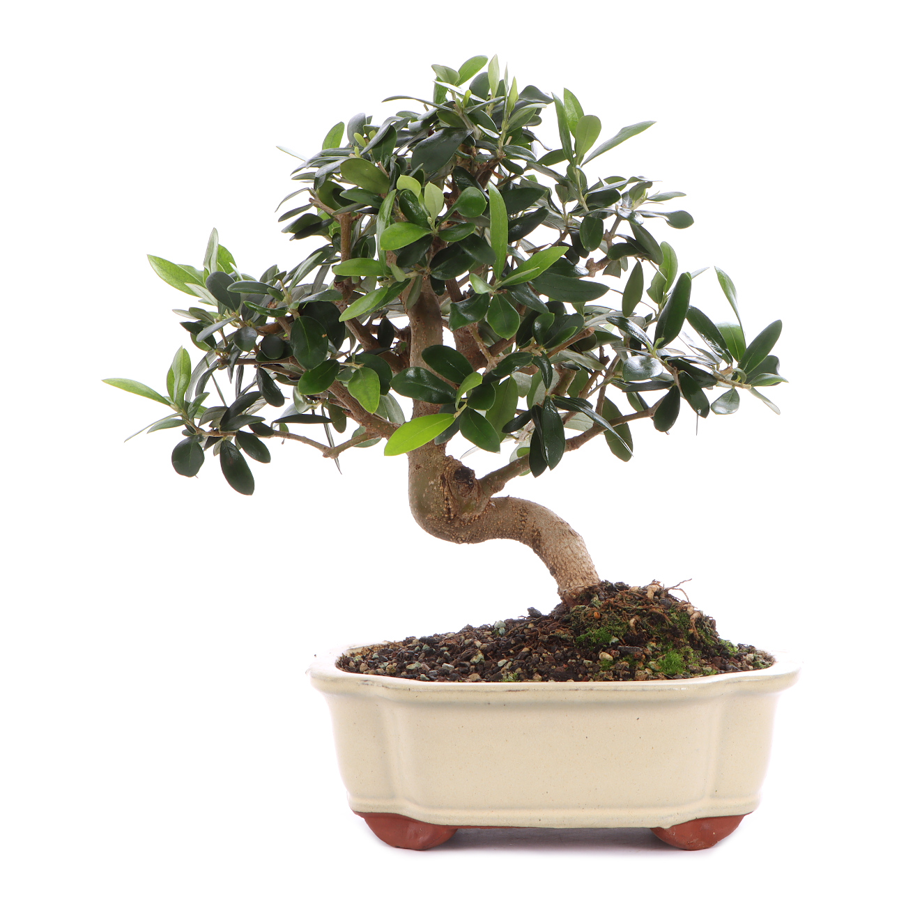 Der Wilde Olivenbaum wächst im Vergleich zu den Kulturformen noch kompakter, dicht verzweigter und hat kleine dunkelgrüne Blätter. Dadurch können aus dieser Pflanze besonders konturstarke Bonsai gestaltet werden.