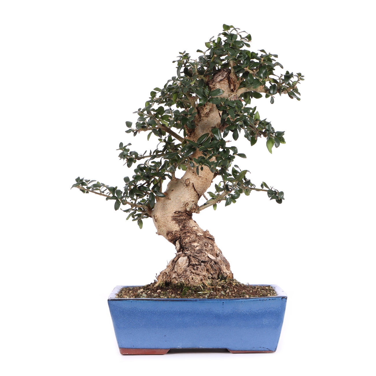 Aus Olivenbäumen lassen sich sehr schöne Bonsais gestalten. Die gute Schnittverträglichkeit, die feine Verzweigung und die immergrünen Blätter sind gute Voraussetzungen dafür. Außerdem stellt die Pflanze keine besonderen Pflegeansprüche. Sie benötigt lediglich einen hellen Platz und während der Wachstumszeit ausreichend Wasser und Dünger. Auf Staunässe reagiert sie jedoch empfindlich und man sollte daher ein strukturstabiles, luftiges Substrat verwenden. Grundsätzlich steht die Olive, wie ihre Verwandten im Mittelmeerraum, sehr gerne im Freien und auch direkt in der Sonne. Im Winter muss sie aber vor Frost geschützt werden. Dazu kann man sie auch im Haus an einem kühlen, aber hellen Platz überwintern. Schneiden, drahten und gestalten kann man die Olive das ganze Jahr über.