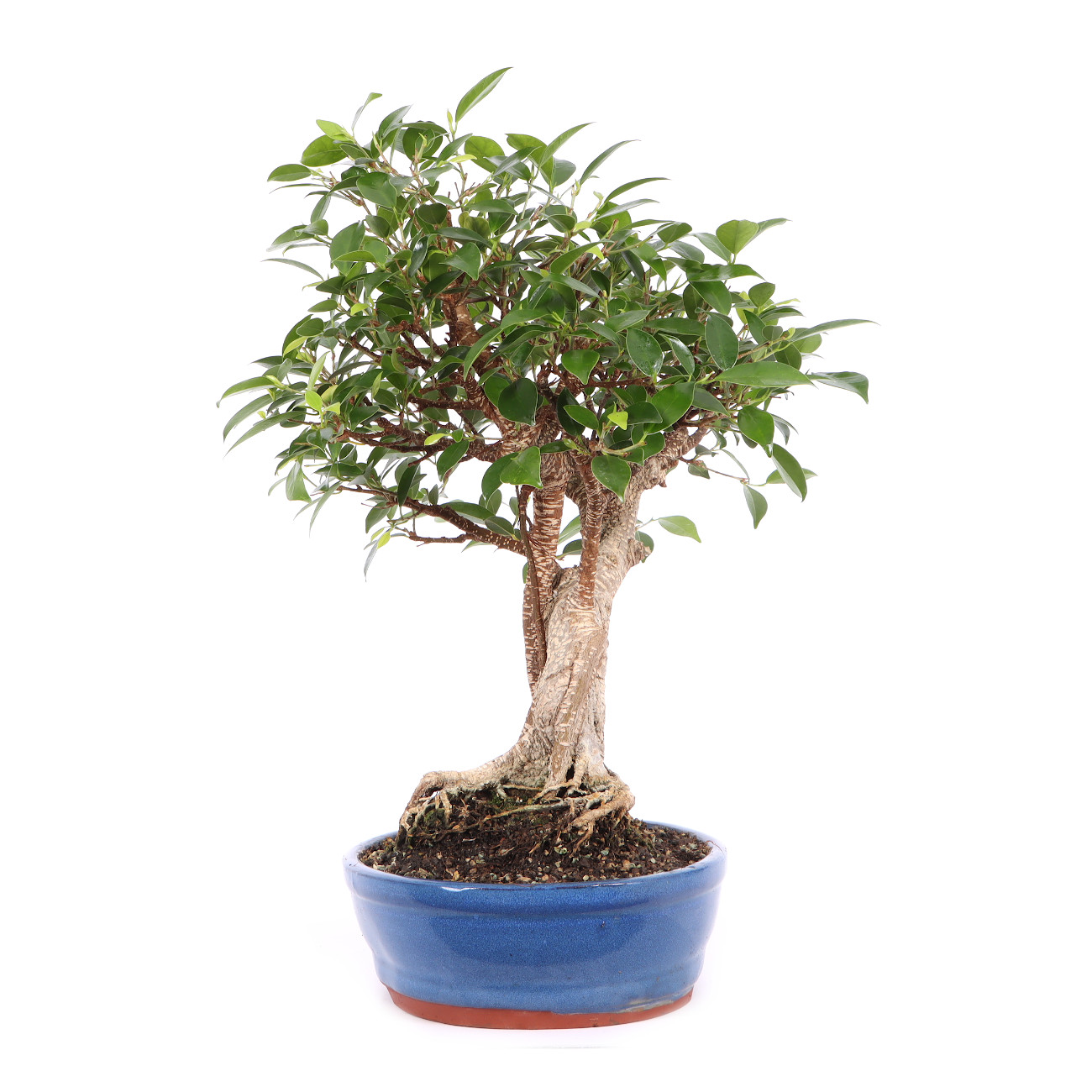 Die Sorte ‘Tiger Bark‘ hat im Vergleich zu der Art eine auffällige, tigerähnliche Rindenzeichnung. Diese weißen Kork- oder Lentizellen sowie die zahlreichen hellbraunen Luftwurzeln verleihen auch jungen Pflanzen schnell ein urwüchsiges Aussehen. Außerdem sind die Blätter dieser Ficus-Art klein und der Wuchs ist kompakt. Insgesamt hat diese Pflanze also sehr gute Eigenschaften als Bonsai.