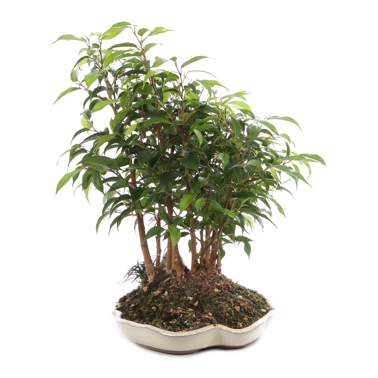Die Sorte ‘Natasja‘ ist eine Zwergform der Art und eignet sich aufgrund der kleinen Blätter und dem dichten Wuchs sehr gut für die Bonsaigestaltung. Außerdem kann man aus den Zwerg-Birkenfeigen tolle Indoor-Wälder und –Landschaften pflanzen.