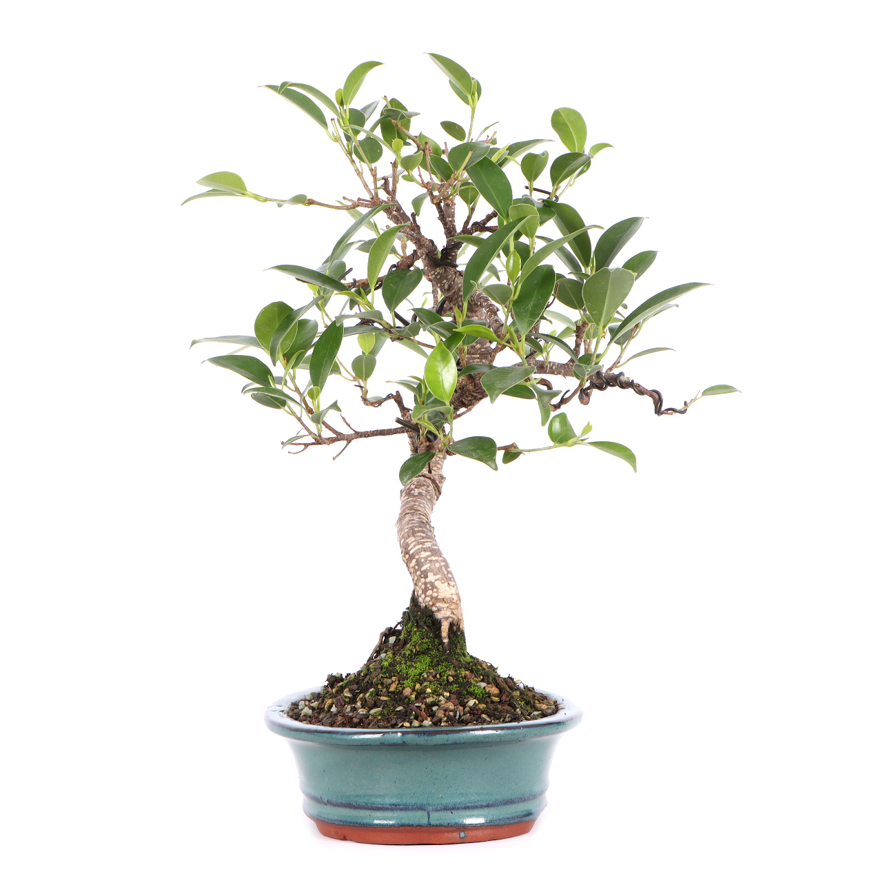 Die Sorte ‘Tiger Bark‘ hat im Vergleich zu der Art eine auffällige, tigerähnliche Rindenzeichnung. Diese weißen Kork- oder Lentizellen sowie die zahlreichen hellbraunen Luftwurzeln verleihen auch jungen Pflanzen schnell ein urwüchsiges Aussehen. Außerdem sind die Blätter dieser Ficus-Art klein und der Wuchs ist kompakt. Insgesamt hat diese Pflanze also sehr gute Eigenschaften als Bonsai.