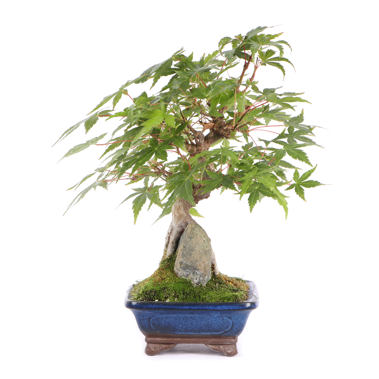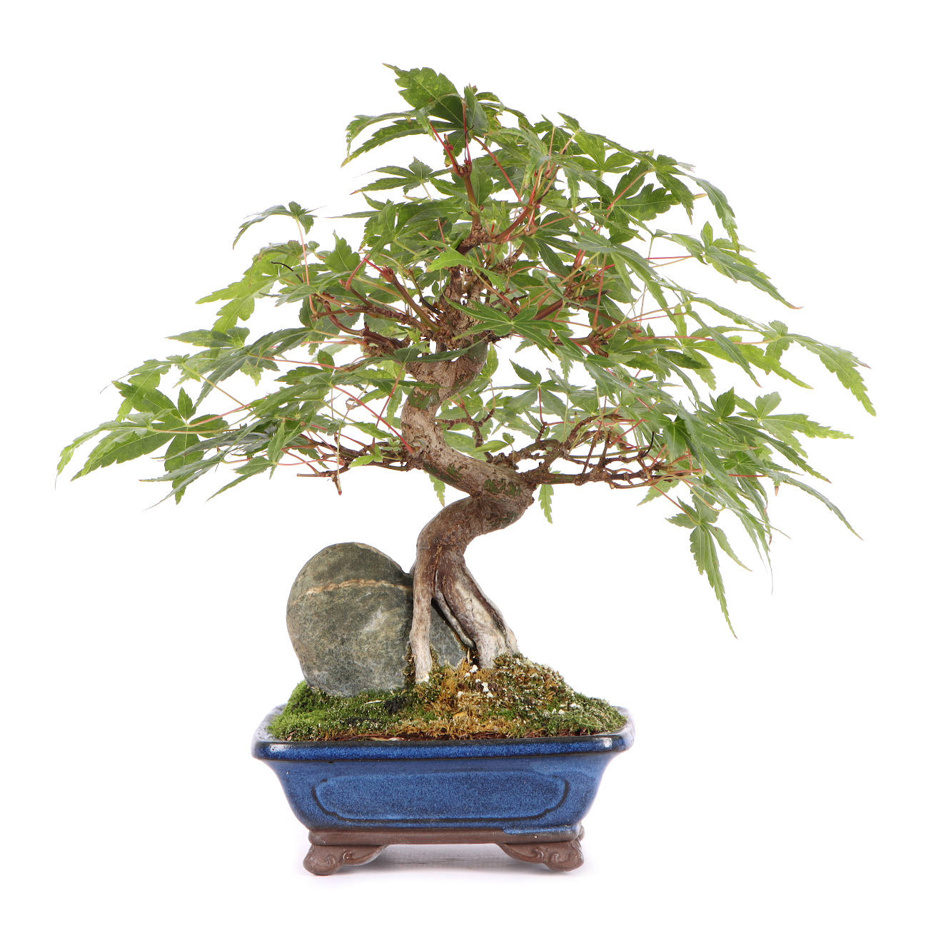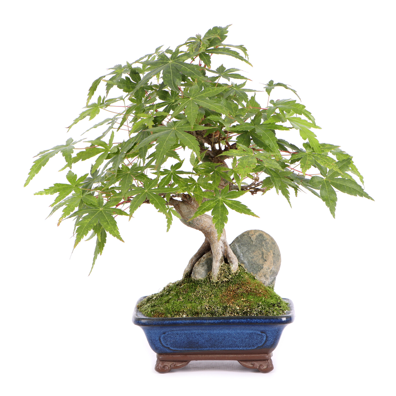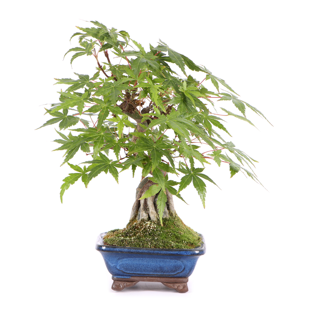 Der Fächer-Ahorn ist wohl der bekannteste asiatische Laubbaum für die Bonsaigestaltung. Die filigrane Verzweigung mit den zarten Blättern verleiht dem Bonsai oft ein sehr anmutiges und graziles Erscheinungsbild. Auch die leuchtende Herbstfärbung ist eine Bereicherung für jede Bonsaisammlung. Für alle Fächer-Ahorne ist ein heller Standort im Freien wichtig. Je heller die Pflanzen stehen, umso kräftiger ist die Blattfärbung. Nur an extrem trockenen und heißen Sommertagen müssen sie schattiert werden. Der Ahorn verträgt keinen verdichteten, schlecht belüfteten und staunassen Boden. Hier kommt es schnell zu Wurzel- bzw. Pilzerkrankungen. Die Erde sollte aber auch besonders im Sommer nicht austrocknen. Also verwendet man am besten ein lockeres Substrat und führt einen regelmäßigen Wurzelschnitt und ein Umtopfen in frisches Substrat im Frühjahr durch. Wenn möglich, benutzt man Regenwasser oder weiches Leitungswasser zum Gießen. Hartes Wasser unbedingt vermeiden. Gedüngt wird in der Wachstumszeit von Mai bis Oktober. Nach unseren Erfahrungen ist ein Formschnitt im Juni, verbunden mit einem Blattschnitt, ideal. Dadurch vermeidet man das „Ausbluten“ von Ästen, die Wunden verheilen sehr schnell und der Neuaustrieb ist nicht zu stark. Die neu gebildeten Blätter sind außerdem kleiner und kräftiger gefärbt. Wunden sollten direkt mit einem Wundverschlussmittel behandelt werden, um das Eindringen von Krankheitserregern zu verhindern. Im Winter ist ein guter Frostschutz sinnvoll.