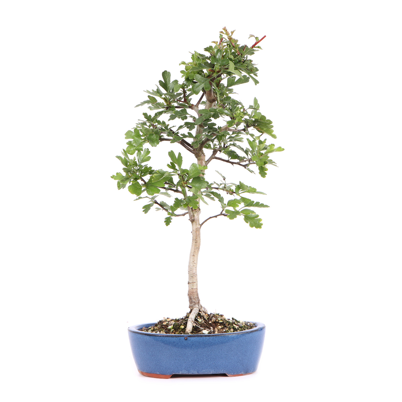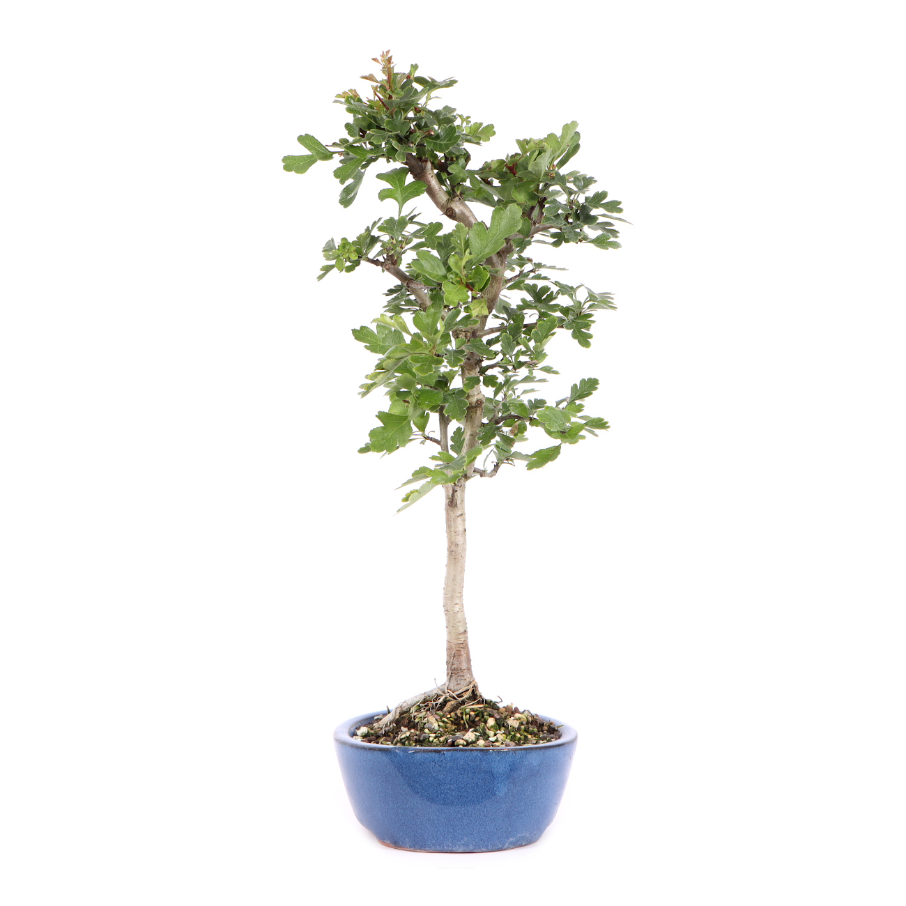 Der Weißdorn eignet sich sehr gut für die Bonsaikultivierung. Die Pflanze verträgt den Rückschnitt sehr gut und reagiert mit der Bildung von vielen neuen Knospen bzw. Trieben. Auch ein starker Rückschnitt und das „auf den Stock setzten“ ist bei einem Weißdorn kein Problem. Die tief eingeschnittenen, gelappten Blätter sind schön klein und geben der Pflanze einen zarten Charakter. Eine besondere Zierde sind aber die vielen dicht stehenden Blüten und die später intensiv rot gefärbten Früchte. Nicht zuletzt hat der Weißdorn in der Jugend eine sehr schöne, glatte, silbrig glänzende Rinde, die im Alter borkig wird und dann abblättert. Die frischen Triebe werden erst nach der Blüte zurückgeschnitten. Der Formschnitt und das Drahten können ohne Bedenken im Sommer vorgenommen werden. Der Draht sollte jedoch nicht einwachsen. Ein sonniger Standort im Freien fördert eine ausgeprägte Herbstfärbung und ein gesundes Wachstum. Man sollte während des Sommers aber auf eine ausreichende Bewässerung achten. Trockenheit führt schnell zum Blattfall. Im Winter ist ein normaler Schutz ausreichend. Eventuell auftretender Mehltau kann mit handelsüblichen Spritzmitteln behandelt werden. Evtl. empfiehlt sich eine prophylaktische Behandlung.