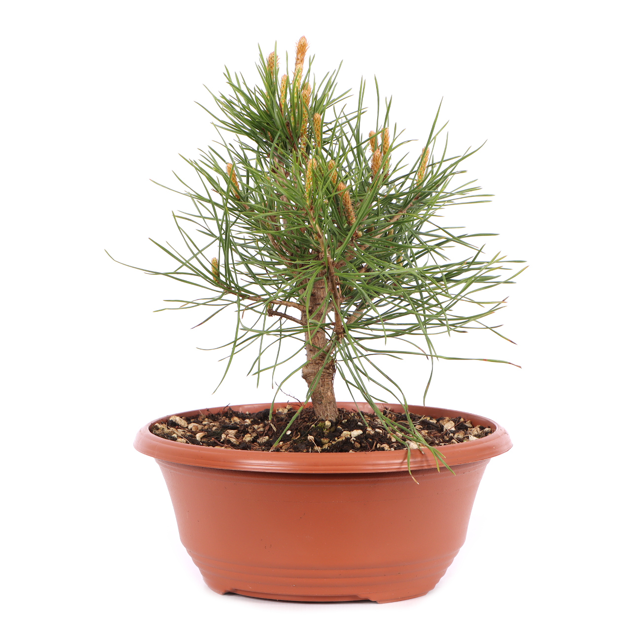 Die Waldkiefer ist durch ihre Anspruchslosigkeit und Robustheit besonders gut für die Bonsaikultur geeignet. Sie ist schnittverträglich und bietet viele gestalterische Möglichkeiten. Als Bonsai strahlt sie durch ihren derben Charakter viel Kraft aus. Andererseits zeigt die gestaltete Kiefer im Vergleich zu Laubbäumen wenig Veränderung und vermittelt dem Betrachter dadurch im Jahresverlauf viel Ruhe. Eine gestaltete Kiefer ist im Grunde sehr pflegeleicht. Die neuen Triebe (Kerzen) werden im Mai eingekürzt bzw. mit den Fingern gebrochen und zu dichte Astpartien werden im Spätsommer ausgelichtet. Im Sommer ist ein sonniger Standort sehr von Vorteil. Kiefern sollten nicht zu nass gehalten werden. Bei langen Regenperioden empfiehlt es sich die Pflanze sogar unter ein Dach zu stellen. Drahten und Gestalten kann man das ganze Jahr über. Dies sollte aber nicht mit dem Umtopfen Anfang September zusammen fallen. Außerdem muss die Pflanze nach der Gestaltung am besten frostfrei stehen. Bei dem Substrat verwendet man eine strukturstabile, luftige Mischung und achtet auf das Vorhandensein von Mykorrhiza-Pilzen. Man erkennt den Pilz an einem gleichmäßigen, feinen und weißen Belag, der die Wurzeln umhüllt und im Optimalfall die ganze Erde durchzieht. Kiefern sind sehr frosthart. Trotzdem sollten sie im Winter vor trockenen Winden geschützt werden.
