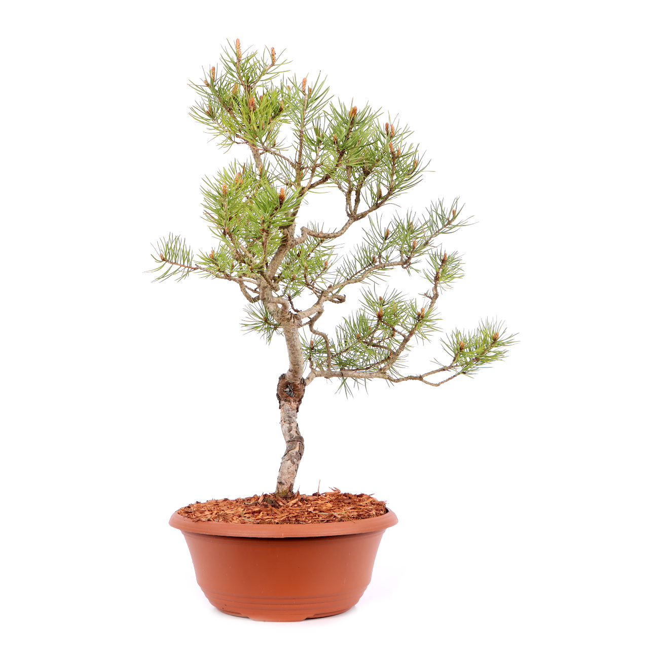 Die Waldkiefer ist durch ihre Anspruchslosigkeit und Robustheit besonders gut für die Bonsaikultur geeignet. Sie ist schnittverträglich und bietet viele gestalterische Möglichkeiten. Als Bonsai strahlt sie durch ihren derben Charakter viel Kraft aus. Andererseits zeigt die gestaltete Kiefer im Vergleich zu Laubbäumen wenig Veränderung und vermittelt dem Betrachter dadurch im Jahresverlauf viel Ruhe. Eine gestaltete Kiefer ist im Grunde sehr pflegeleicht. Die neuen Triebe (Kerzen) werden im Mai eingekürzt bzw. mit den Fingern gebrochen und zu dichte Astpartien werden im Spätsommer ausgelichtet. Im Sommer ist ein sonniger Standort sehr von Vorteil. Kiefern sollten nicht zu nass gehalten werden. Bei langen Regenperioden empfiehlt es sich die Pflanze sogar unter ein Dach zu stellen. Drahten und Gestalten kann man das ganze Jahr über. Dies sollte aber nicht mit dem Umtopfen Anfang September zusammen fallen. Außerdem muss die Pflanze nach der Gestaltung am besten frostfrei stehen. Bei dem Substrat verwendet man eine strukturstabile, luftige Mischung und achtet auf das Vorhandensein von Mykorrhiza-Pilzen. Man erkennt den Pilz an einem gleichmäßigen, feinen und weißen Belag, der die Wurzeln umhüllt und im Optimalfall die ganze Erde durchzieht. Kiefern sind sehr frosthart. Trotzdem sollten sie im Winter vor trockenen Winden geschützt werden.