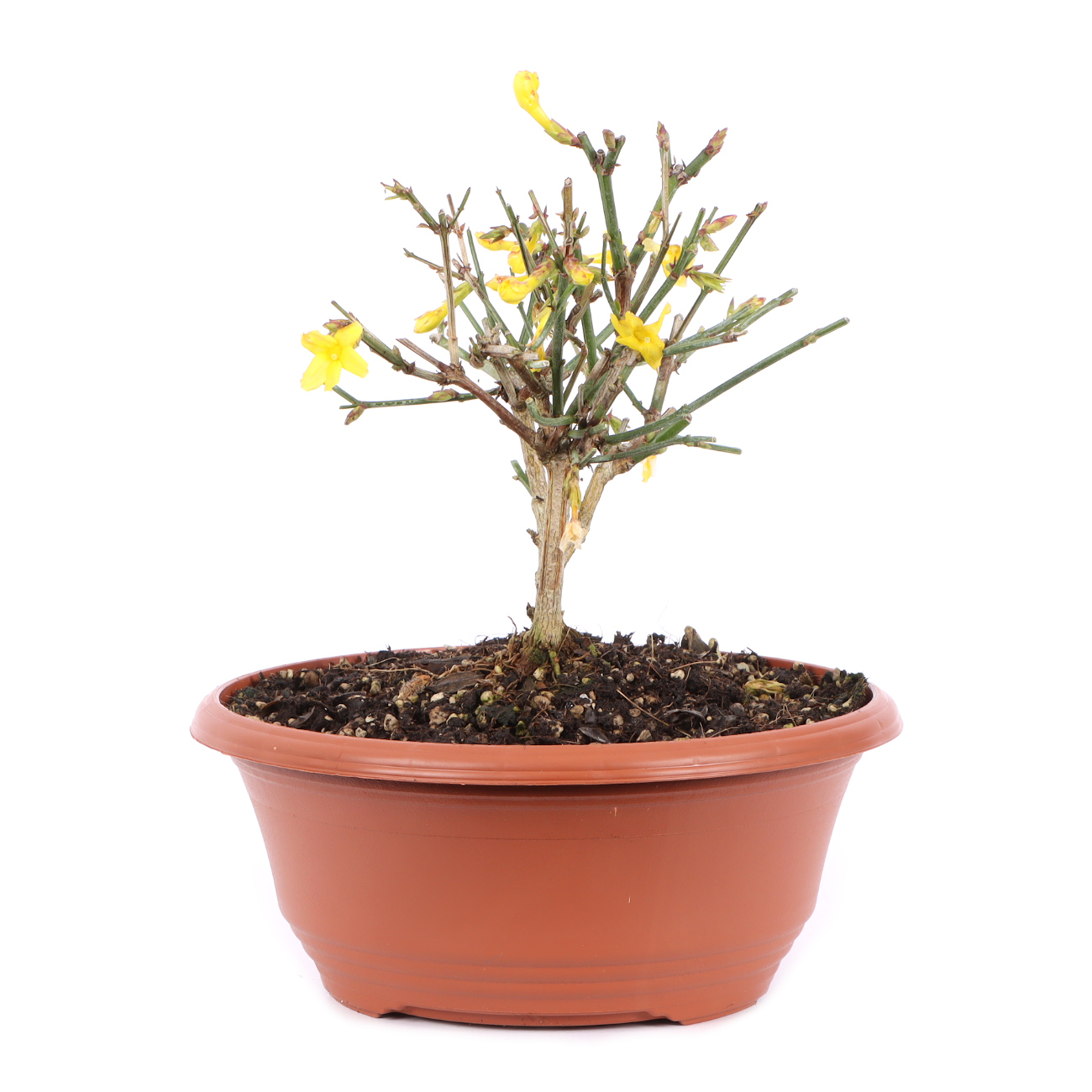 Durch einen Winterjasmin beginnt das Bonsai-Jahr manchmal schon im Januar. Bei milden Temperaturen zeigen sich dann nämlich die ersten Frühjahrsblüten. Zusammen mit dem hellen Stamm und den grünen Ästen entsteht ein sehr schöner Anblick. Die Pflanze entwickelt dann im Frühjahr lange Triebe, die stark zurückgeschnitten werden müssen. Ein Drahten der Äste ist auch möglich. Im Sommer kann der Winterjasmin vollsonnig stehen. Im Winter ist ein geschützter Standort zu empfehlen.