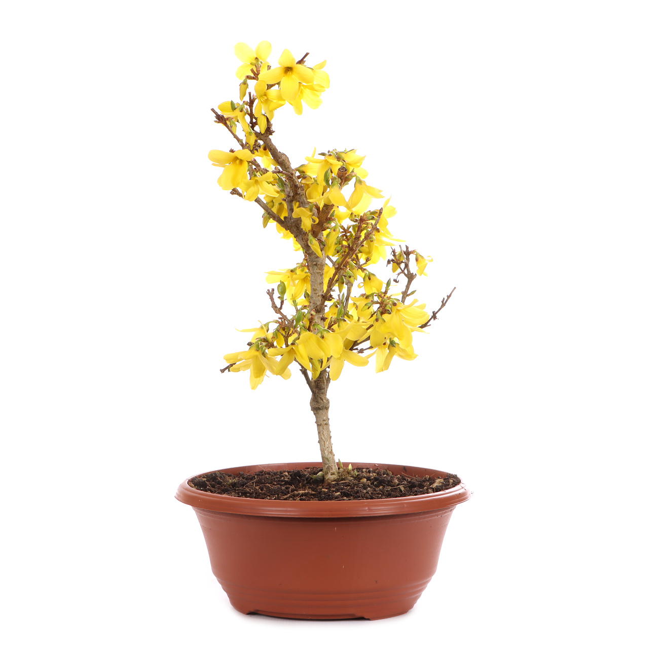 Als Bonsai lassen sich Forsythien ebenfalls sehr gut kultivieren. Sie sind robust, winterhart und treiben sehr gut. Auch ein starker Rückschnitt ist problemlos möglich. Das Schönste an den Pflanzen ist sicherlich die intensive, knallgelbe Blüte im Frühjahr noch vor dem Blattaustrieb. Außerdem haben Forsythien eine schöne, grüngelbe bis lilafarbige Herbstfärbung. Auch die Rinde ist durch ihre Korkpusteln interessant und es bilden sich sehr schnell tolle Wurzelansätze. Durch die Wüchsigkeit muss die Pflanze regelmäßig geschnitten werden. Die Pflanzen bilden auch schnell viele, feine Wurzeln und müssen regelmäßig umgetopft werden. Forsythien sind sehr tolerant gegenüber den Standortbedingungen. Sie müssen im Sommer aber ausgiebig gewässert werden.