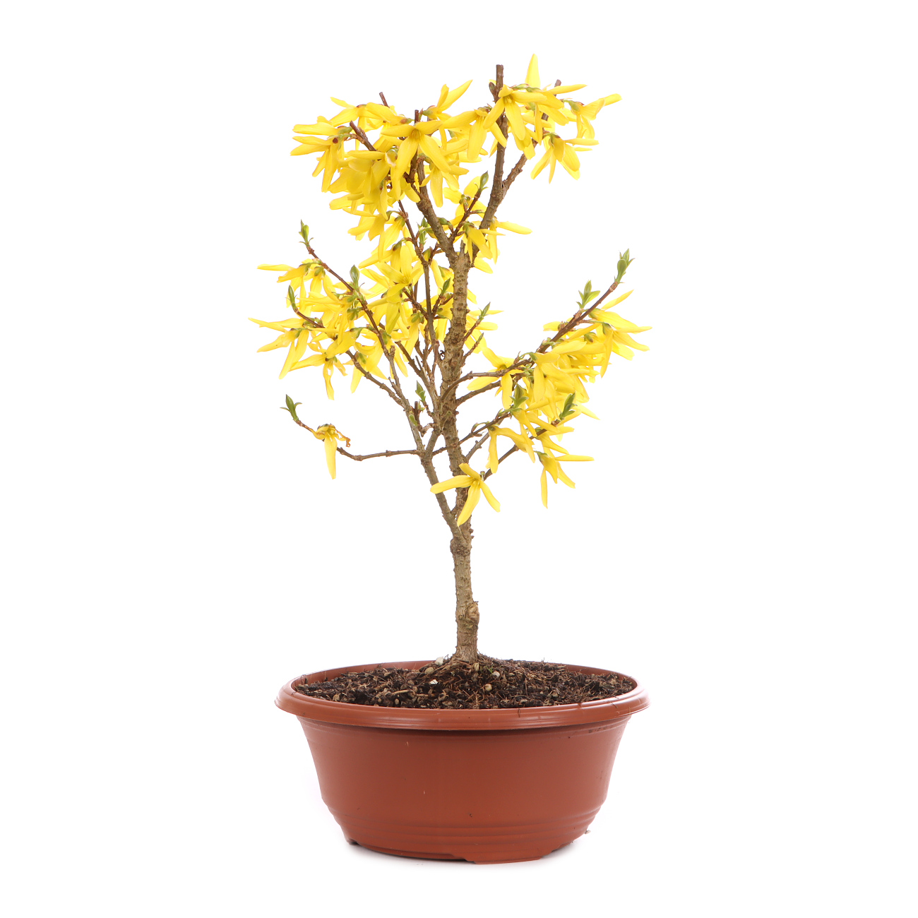 Als Bonsai lassen sich Forsythien ebenfalls sehr gut kultivieren. Sie sind robust, winterhart und treiben sehr gut. Auch ein starker Rückschnitt ist problemlos möglich. Das Schönste an den Pflanzen ist sicherlich die intensive, knallgelbe Blüte im Frühjahr noch vor dem Blattaustrieb. Außerdem haben Forsythien eine schöne, grüngelbe bis lilafarbige Herbstfärbung. Auch die Rinde ist durch ihre Korkpusteln interessant und es bilden sich sehr schnell tolle Wurzelansätze. Durch die Wüchsigkeit muss die Pflanze regelmäßig geschnitten werden. Die Pflanzen bilden auch schnell viele, feine Wurzeln und müssen regelmäßig umgetopft werden. Forsythien sind sehr tolerant gegenüber den Standortbedingungen. Sie müssen im Sommer aber ausgiebig gewässert werden.