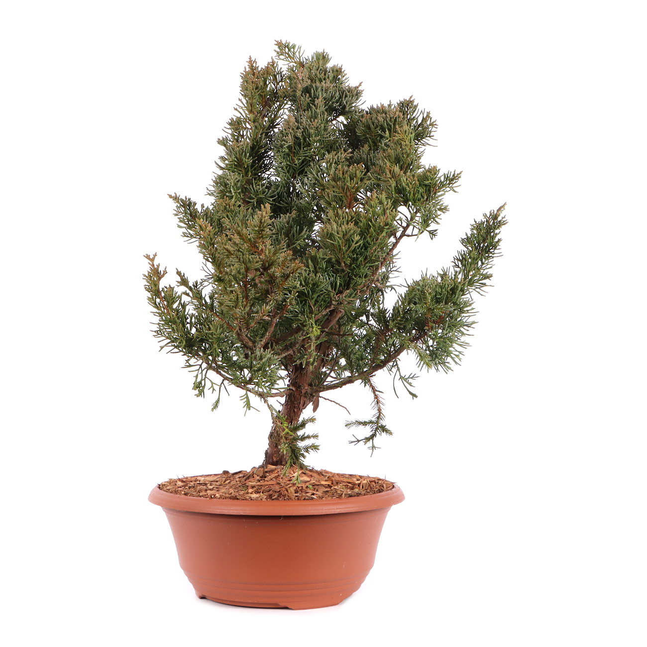 Der Chinesische Wacholder ist neben der Mädchenkiefer das bekannteste und beliebteste Nadelgehölz für die Bonsaigestaltung. Das feine immergrüne Laub, die Biegsamkeit des Holzes und die allgemeine Robustheit, machen die Pflanzen zu einem optimalen Ausgangsmaterial für die Bonsaigestaltung. In Japan findet man außerdem uralte und bizarr gewachsene Wacholder in der Natur. Durch die genannten Eigenschaften bieten sich fast unbegrenzte Möglichkeiten, das Grün der Pflanze neu anzuordnen und interessante Totholzpartien zu gestalten. Der Wacholder verzeiht hier auch massive Eingriffe, solange man ihm immer wieder Zeit zur Regeneration gibt. Ein sonniger Platz im Freien ist im Sommer für eine gesunde Entwicklung sehr wichtig. Bei einem schattigen Standort leidet die Ausfärbung der Nadeln, und die Triebe werden lang und unansehnlich. Auch im Winter ist ein sehr heller aber geschützter Platz unerlässlich. Die rötlich-braune Verfärbung der Nadeln im Winter ist normal. Im Frühjahr, wenn es wärmer wird, werden die Nadeln wieder grün. Auch wenn in den Sommermonaten reichliches Gießen erforderlich ist, muss Staunässe unbedingt vermieden werden. Kurzfristige Trockenheit verträgt der Chinesische Wacholder ohne Schaden. Die Gestaltung mit Formschnitt und Drahten wird in der Wachstumsruhe von November bis März vorgenommen. Umgetopft wird von August bis September in gut luft- und wasserdurchlässige Erde. An tierischen Schädlingen sind bei uns an Wacholdern nur Blattläuse und Spinnmilben aufgetreten. Mit handelsüblichen Pflanzenschutzmitteln sind diese aber schnell zu beseitigen. Ein optimaler Standort, aufmerksame Pflege und eine ausreichende Ernährung sind in der Regel die besten vorbeugenden Pflanzenschutzmaßnahmen.