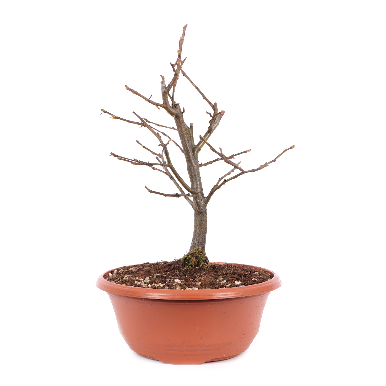 Von den heimischen Bäumen ist die Hainbuche (oder auch Weißbuche genannt) sicherlich am einfachsten zu gestalten. Durch ihre gute Schnittverträglichkeit und ihre Wuchsfreudigkeit hat man in kürzester Zeit ansehnliche kleine Bäume. Ihre glatte Rinde und die am Stamm auftretenden unregelmäßigen Wülste sehen bei frei aufrechten Formen am interessantesten aus. Die Hainbuche treibt den ganzen Sommer kräftig durch, so dass ein ständiges zurückschneiden notwendig ist. Bei extremer Hitze empfiehlt es sich die Pflanze etwas schattiger zu stellen, um Blattverbrennungen zu vermeiden. Wer ein schnelles Dickenwachstum der Äste und des Stammes fördern will, pflanzt die Hainbuche in das Freiland oder in einen überdimensionierten Topf und schneidet während des ganzen Sommers nicht. Erst im Frühjahr wird die Hainbuche dann stark zurückgenommen. Es ist sogar möglich, alle Äste bis auf den Stamm zurückzuschneiden. Im folgenden Sommer werden die frischen Triebe wiederum nicht geschnitten. Erst im Winter oder Frühjahr wird der Baum neu aufgebaut und in eine Schale getopft. Der Zeitpunkt des Umtopfens sollte nicht zu spät gelegt werden, da nach unseren Erfahrungen Hainbuchen, die im Austrieb umgetopft wurden, starke Probleme beim Anwachsen hatten. Während der folgenden Wachstumsperiode werden die frischen Triebe rechtzeitig eingekürzt, um eine feine Verzweigung zu erreichen. An den Standort stellt die Hainbuche keine großen Ansprüche, nur in extrem warmen Sommermonaten ist eine Beschattung während der Mittagszeit sinnvoll. Im Winter sollte die Pflanze nicht austrocknen. Ideal ist eine geschützte Überwinterung in einem nicht beheizten Glas- oder Folienhaus. Bei Spätfrösten muss die Pflanze ebenfalls geschützt werden.