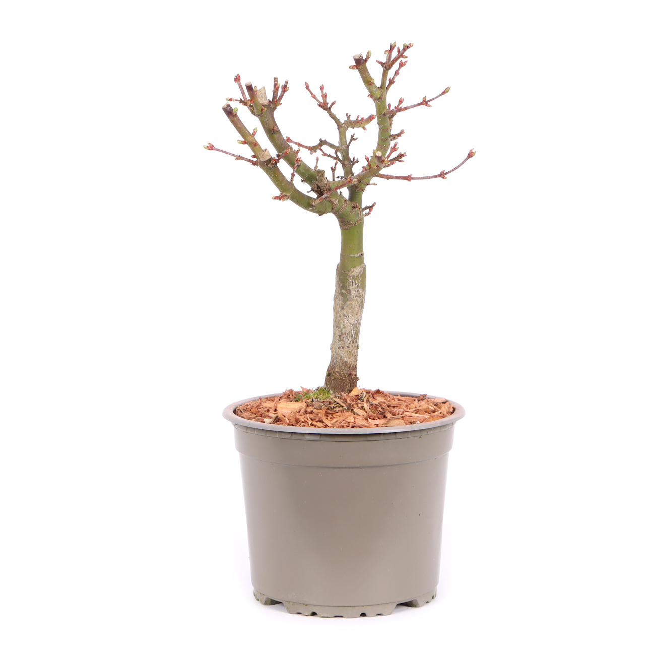 Der Fächer-Ahorn ist wohl der bekannteste asiatische Laubbaum für die Bonsaigestaltung. Die filigrane Verzweigung mit den zarten Blättern verleiht dem Bonsai oft ein sehr anmutiges und graziles Erscheinungsbild. Auch die leuchtende Herbstfärbung ist eine Bereicherung für jede Bonsaisammlung. Für alle Fächer-Ahorne ist ein heller Standort im Freien wichtig. Je heller die Pflanzen stehen, umso kräftiger ist die Blattfärbung. Nur an extrem trockenen und heißen Sommertagen müssen sie schattiert werden. Der Ahorn verträgt keinen verdichteten, schlecht belüfteten und staunassen Boden. Hier kommt es schnell zu Wurzel- bzw. Pilzerkrankungen. Die Erde sollte aber auch besonders im Sommer nicht austrocknen. Also verwendet man am besten ein lockeres Substrat und führt einen regelmäßigen Wurzelschnitt und ein Umtopfen in frisches Substrat im Frühjahr durch. Wenn möglich, benutzt man Regenwasser oder weiches Leitungswasser zum Gießen. Hartes Wasser unbedingt vermeiden. Gedüngt wird in der Wachstumszeit von Mai bis Oktober. Nach unseren Erfahrungen ist ein Formschnitt im Juni, verbunden mit einem Blattschnitt, ideal. Dadurch vermeidet man das „Ausbluten“ von Ästen, die Wunden verheilen sehr schnell und der Neuaustrieb ist nicht zu stark. Die neu gebildeten Blätter sind außerdem kleiner und kräftiger gefärbt. Wunden sollten direkt mit einem Wundverschlussmittel behandelt werden, um das Eindringen von Krankheitserregern zu verhindern. Im Winter ist ein guter Frostschutz sinnvoll.