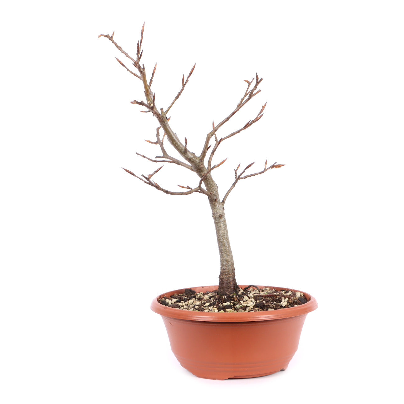 Der Buchenwald sollte jedem Bonsai-Liebhaber vertraut sein. Er ist ein Synonym für die Natur in Deutschland. Entsprechend ist die Beziehung zu der Rotbuche über die Pflege eines Bonsais mehr als verständlich. Die Buche verträgt den Rückschnitt sehr gut und treibt willig auch aus dem alten Holz wieder aus. Bei vitalen und reifen Pflanzen kann der frische Austrieb pinziert werden. Hierbei wird die noch weiche Triebspitze bis auf zwei neue Blätter abgezupft. Dadurch entsteht eine Stauchung und die Internodien des neuen Triebes bleiben kürzer. Äste können gut gedrahtet werden aber der Draht muss unbedingt rechtzeitig entfernt werden. Ansonsten entstehen unansehnliche Narben, die aufgrund der glatten Rinde nicht mehr verschwinden. Die Rotbuche liebt einen sonnigen Platz aber gedeiht auch im Halbschatten. Bei zu großer Hitze und Trockenheit sollte man die Pflanze geschützt stellen. Das Substrat sollte nicht austrocknen, aber Staunässe ist ebenfalls zu vermeiden. Eine Behandlung mit Mykorrhiza und eine organische Düngung sind für den Boden und die Vitalität der Pflanze sehr von Vorteil. Die Buche ist winterhart, aber im Frühjahr spätfrostgefährdet. Nachdem sich die Blätter entfaltet haben, sollte man außerdem auf Wollläuse achten und diese rechtzeitig mit Wasser abspülen.