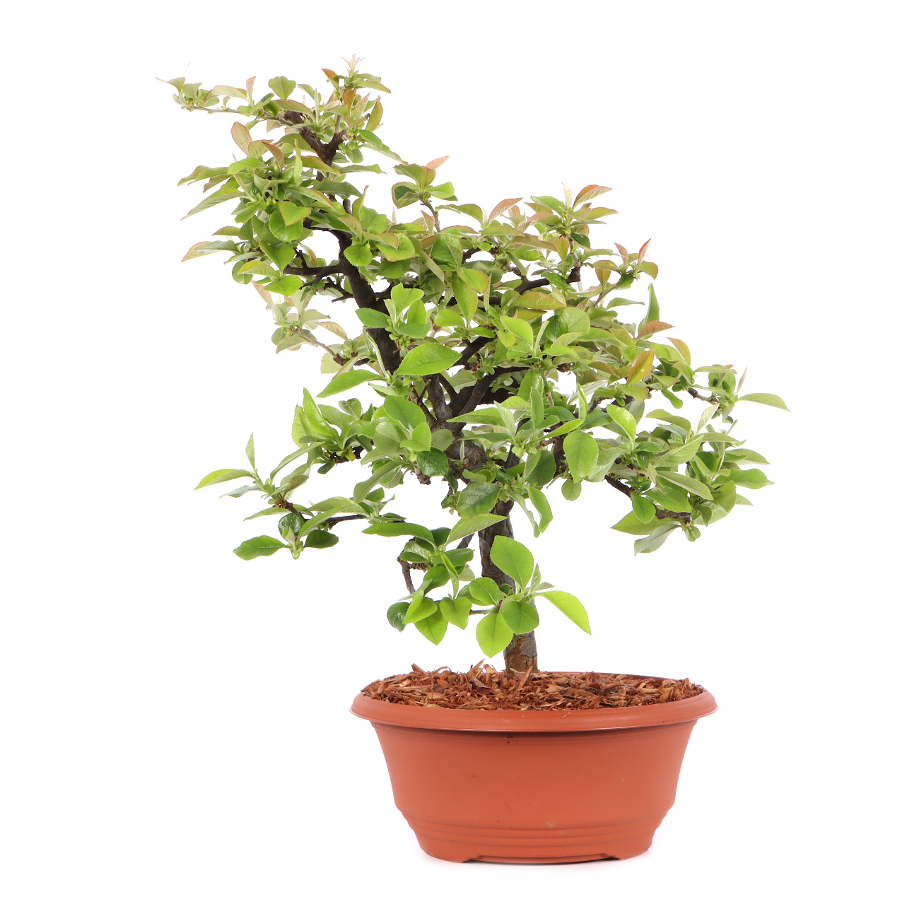 In Japan ist die Chinesische Quitte ein sehr beliebter Bonsai. Die Wüchsigkeit, der imposante Stamm, die zarten Blüten, die spektakulären Früchte und nicht zuletzt die Herbstfärbung sind optimale Eigenschaften für einen Bonsai. Die Pflanzenart sehr schnittverträglich und entwickelt schnell eine gute Verzweigung. Die Äste müssen allerdings frühzeitig gedrahtet werden, da sie mit zunehmendem Alter sehr hart und unflexibel werden. Die Quitte ist grundsätzlich eine robuste Pflanze, aber im Winter bzw. Frühjahr sollte man sie geschützt stellen, da die frischen Wurzeln frostempfindlich sind. Aus Samen gezogene Pflanzen blühen und fruchten in einem Alter von ca. 8 Jahren.