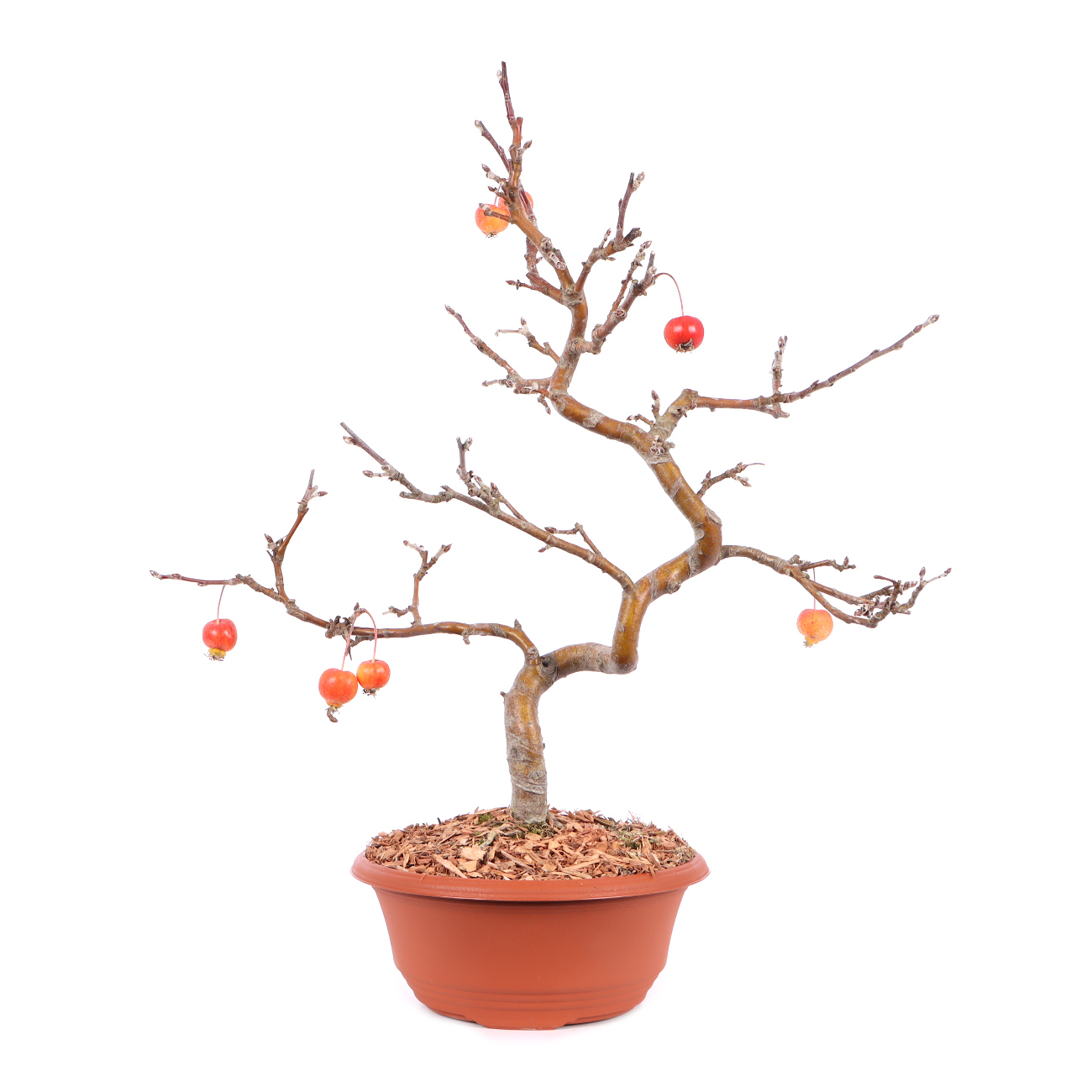 Durch die intensive Blüte im Mai/Juni und die kleinen Zieräpfel sind diese Pflanzen auch als Bonsai sehr beliebt. Zier-Äpfel sind robust, anspruchslos und in der Pflege insgesamt unkompliziert. Durch einen regelmäßigen Rückschnitt des Neuaustriebes entwickeln sich fast von selbst ansehnliche Bäume. Im Sommer lieben alle Zier-Äpfel einen sonnigen Platz im Freien. Lediglich bei Hitzeperioden ist ein Schutz sinnvoll. Man muss während der Hauptwachstumszeit an eine ausreichende Bewässerung und Düngung denken. Es ist nichts Besonderes, wenn an heißen Sommertagen morgens und abends gewässert werden muss. Die Erde sollte in der Lage sein, tagsüber so viel Wasser zu liefern, wie die Pflanze durch ihre Blätter verdunstet. Im Winter ist der Wasserverbrauch erheblich geringer, ein geschützter Platz ist dann ausreichend. Leichter Frost schadet nicht, im Gegenteil. Die Minus-Temperatur fördert eine gute Blüten- und Fruchtbildung für das nächste Jahr. Ein guter Zeitpunkt für das Umtopfen, den Wurzel- und Formschnitt ist das Frühjahr, bevor der Zierapfel austreibt.
