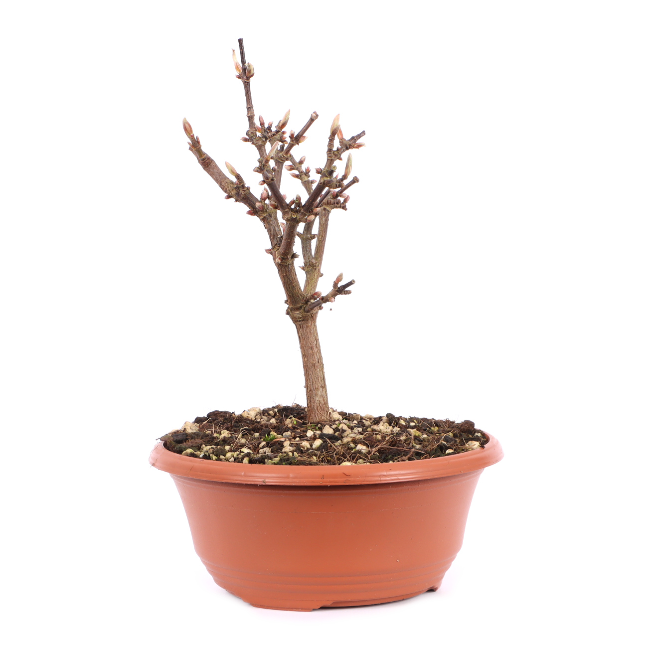 Durch einen Winterschneeball in der Bonsai-Sammlung muss man nicht lange auf die Frühjahrsblüte warten. Schon mitten im Winter blüht diese Art und verströmt ihren Duft im Winterquartier. Obwohl die Art etwas sparrig wächst, kann man durch den Rückschnitt und das Drahten junger Triebe eine schöne Form erziehen. Auch im Sommer sind die Blätter durch ihre etwas gröbere Textur und dunklere Farbe eine schöne Ergänzung zu den anderen Pflanzen. Die Äste und der Stamm entwickeln schnell eine grobe, rissige Borke und vermitteln dadurch den Eindruck von Alter. Der Schneeball steht am besten hell und wird ausreichend gewässert und gedüngt. Die Pflanze ist winterhart, aber der Wurzelballen sollte auch im Winter nicht austrocknen.