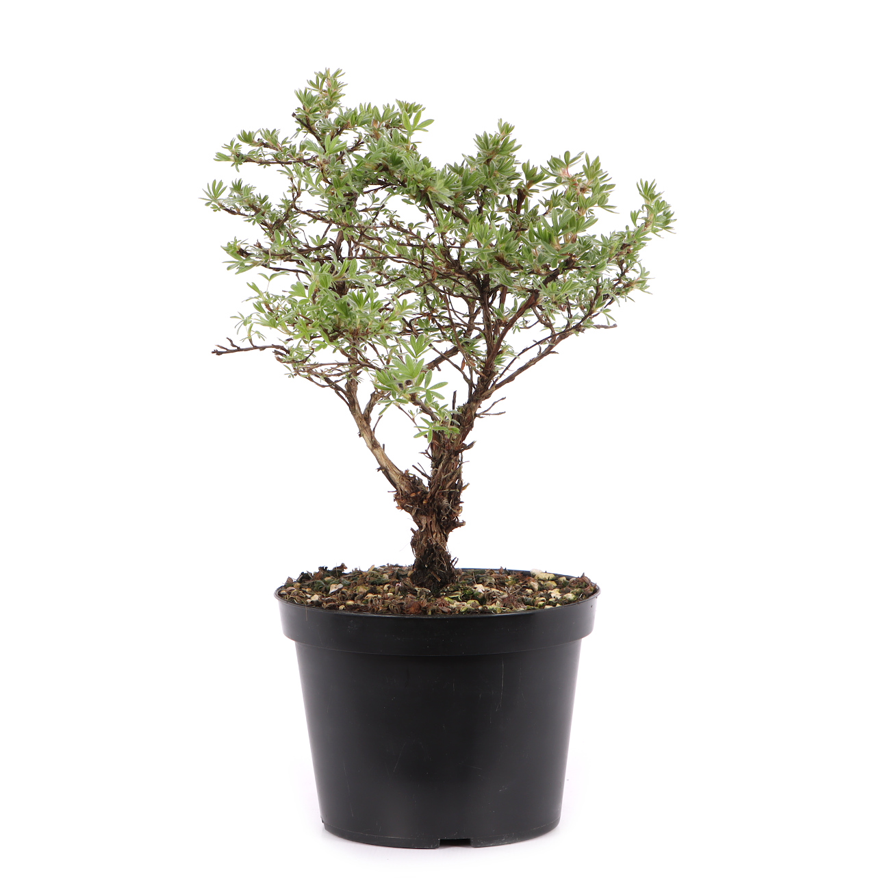 Der Fingerstrauch hat optimale Eigenschaften um ganz besondere Bonsais zu gestalten. Die Blätter sind klein und filigran und verfärben sich gelborange im Herbst. Die Pflanze ist sehr schnittverträglich und bildet viele zum Teil sehr feine Äste. Die Rinde ist rotbraun und löst sich in dünnen Streifen, ähnlich wie bei einem Wacholder. Nicht zuletzt blüht der Fingerstrauch unermüdlich und mehrmals im Jahr. Insgesamt ist die Pflanze auch sehr robust und verzeiht den einen oder anderen Pflegefehler. Der Fingerstrauch sollte für eine optimale Blüte sonnig stehen. An sehr heißen Tagen muss man jedoch auf eine ausreichende Bewässerung achten oder die Pflanze etwas geschützt stellen. Das Wurzelwachstum ist stark und die Pflanzen müssen regelmäßig umgetopft werden.