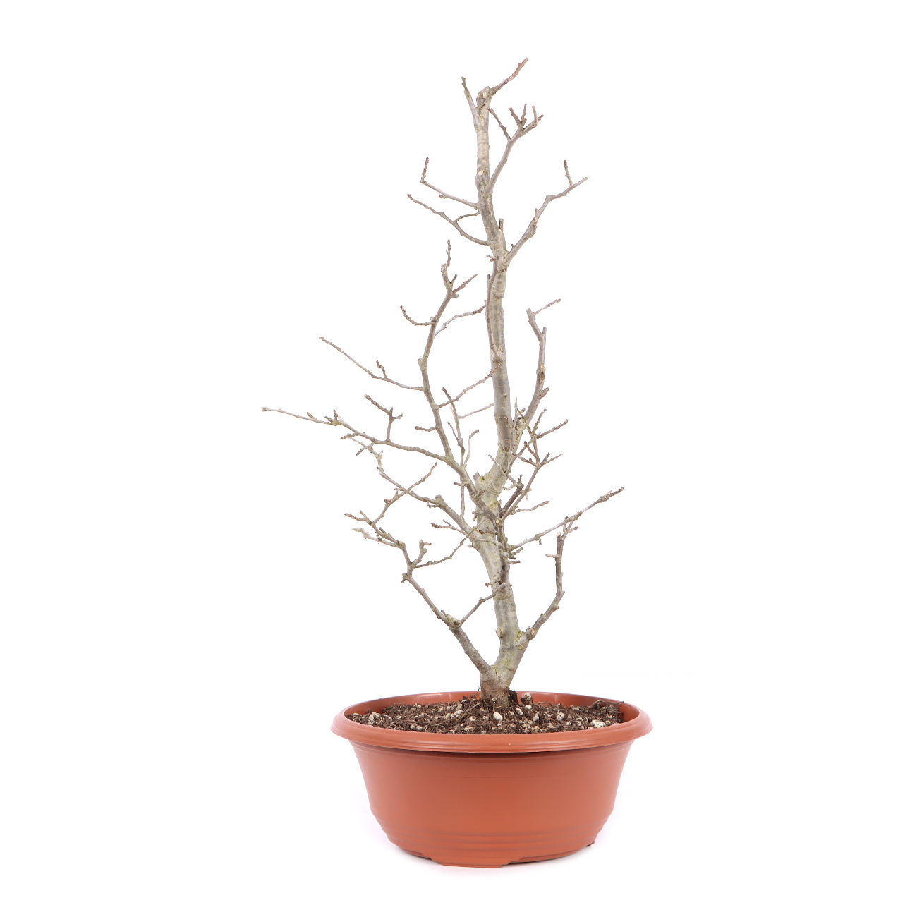 Als Bonsai ist die Winterbeere aufgrund ihres Fruchtschmuckes sehr beliebt. Durch den Blattabwurf im Herbst kommen die knallroten, kleinen Früchte an den Bäumen besonders gut zur Geltung. Für die Fruchtbildung benötigt man im direkten Umfeld eine männliche Pflanze dieser Art bzw. Gattung. Die beste Befruchtung erzielt man jedoch durch das Zusammenstellen von einer weiblichen und männlichen Pflanze direkt während der Blütezeit. Dann kann man gut beobachten, wie besonders Schwebfliegen die Bestäubung übernehmen. Eine Blütenbildung findet sich manchmal schon an dreijährigen Pflanzen. Dazu sollte man die frischen Triebe ab August aber nicht mehr schneiden, da sich an ihnen die Blütenknospen für das nächste Jahr bilden. Winterbeeren sind ansonsten schnittverträglich und bilden eine feine und dichte Verzweigung. Das Drahten und Biegen von Ästen muss sehr vorsichtig geschehen. Die Äste sind hart und spröde und Drahtspuren würden aufgrund der glatten Rinde immer sichtbar bleiben. Auch wenn es keine typischen Stechpalmen sind, lieben sie einen halbschattigen Standort im Sommer. Die feinen Wurzeln vertragen keine Staunässe und es muss entsprechend aufmerksam gegossen werden. Im Winter steht die Pflanze am besten geschützt und frostfrei.