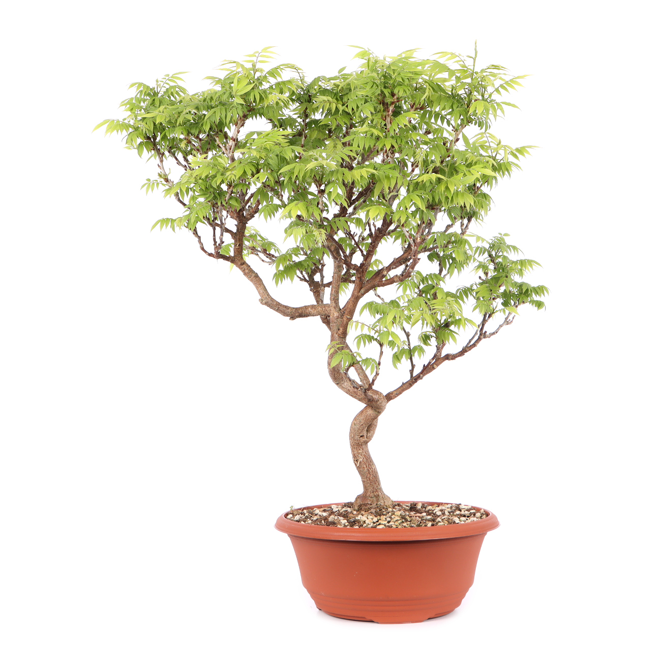 Der Zwerg-Blauregen ist eine einzigartige Pflanze für die Bonsaigestaltung. Es gibt nach unserer Erfahrung kein Gehölz mit kleineren gefiederten Blättern. Bei größeren Exemplaren wirken diese kleinen, filigranen Blätter besonders anmutig und erinnern an das lichte Kronendach einer uralten Esche oder Robinie. Es lassen sich aus der Pflanze ebenfalls sehr schöne Zwerg-Bonsai erziehen. Die Triebe des Zwerg-Blauregens lassen sich sehr gut drahten und biegen. Die Pflanzen können bei ausreichender Bewässerung in der vollen Sonne stehen. Wenn der Boden durch die feine Durchwurzelung zu dicht wird, muss umgetopft werden. Im Winter sollten die Pflanzen nach Möglichkeit frostfrei stehen.