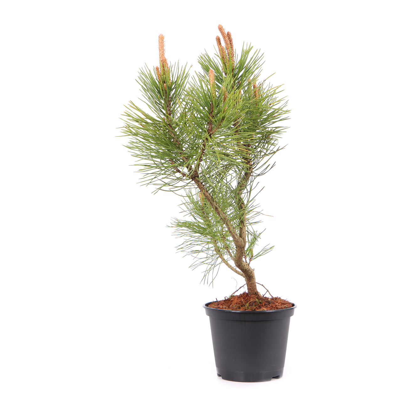 Kiefern sind für die Bonsaigestaltung sehr beliebt. Sie sind robust und bieten viele gestalterische Möglichkeiten. Als Bonsai strahlen sie durch ihren derben Charakter viel Kraft aus. Andererseits zeigt die gestaltete Kiefer im Vergleich zu Laubbäumen wenig Veränderung und vermittelt dem Betrachter dadurch im Jahresverlauf viel Ruhe. Eine gestaltete Kiefer ist im Grunde sehr pflegeleicht. Die neuen Triebe (Kerzen) werden im Mai eingekürzt bzw. mit den Fingern gebrochen und zu dichte Astpartien werden im Spätsommer ausgelichtet. Im Sommer ist ein sonniger Standort sehr von Vorteil. Kiefern sollten nicht zu nass gehalten werden. Bei langen Regenperioden empfiehlt es sich die Pflanze sogar unter ein Dach zu stellen. Drahten und Gestalten kann man das ganze Jahr über. Dies sollte aber nicht mit dem Umtopfen im September zusammen fallen. Außerdem muss die Pflanze nach der Gestaltung am besten frostfrei stehen. Bei dem Substrat verwendet man eine strukturstabile, luftige Mischung und achtet auf das Vorhandensein von Mykorrhiza-Pilzen. Man erkennt den Pilz an einem gleichmäßigen, feinen und weißen Belag, der die Wurzeln umhüllt und im Optimalfall die ganze Erde durchzieht. Kiefern sind sehr frosthart. Trotzdem sollten sie im Winter vor trockenen Winden geschützt werden.