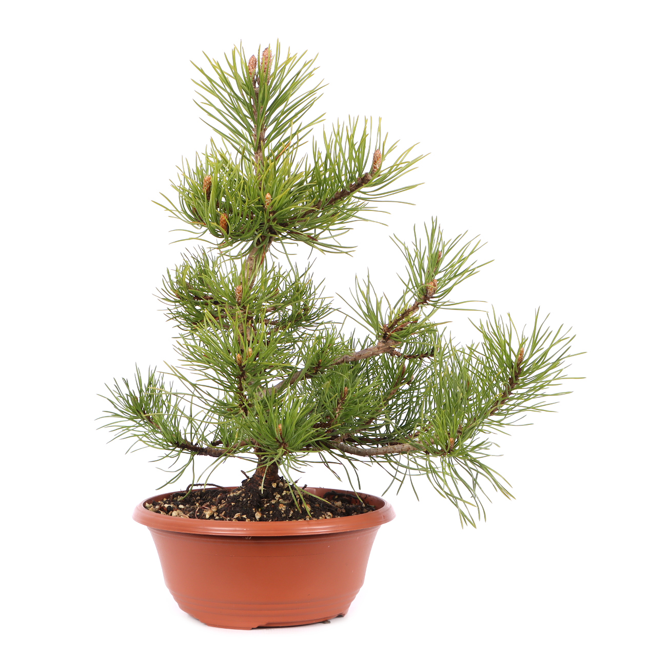 Kiefern sind für die Bonsaigestaltung sehr beliebt. Sie sind robust und bieten viele gestalterische Möglichkeiten. Als Bonsai strahlen sie durch ihren derben Charakter viel Kraft aus. Andererseits zeigt die gestaltete Kiefer im Vergleich zu Laubbäumen wenig Veränderung und vermittelt dem Betrachter dadurch im Jahresverlauf viel Ruhe. Eine gestaltete Kiefer ist im Grunde sehr pflegeleicht. Die neuen Triebe (Kerzen) werden im Mai eingekürzt bzw. mit den Fingern gebrochen und zu dichte Astpartien werden im Spätsommer ausgelichtet. Im Sommer ist ein sonniger Standort sehr von Vorteil. Kiefern sollten nicht zu nass gehalten werden. Bei langen Regenperioden empfiehlt es sich die Pflanze sogar unter ein Dach zu stellen. Drahten und Gestalten kann man das ganze Jahr über. Dies sollte aber nicht mit dem Umtopfen im September zusammen fallen. Außerdem muss die Pflanze nach der Gestaltung am besten frostfrei stehen. Bei dem Substrat verwendet man eine strukturstabile, luftige Mischung und achtet auf das Vorhandensein von Mykorrhiza-Pilzen. Man erkennt den Pilz an einem gleichmäßigen, feinen und weißen Belag, der die Wurzeln umhüllt und im Optimalfall die ganze Erde durchzieht. Kiefern sind sehr frosthart. Trotzdem sollten sie im Winter vor trockenen Winden geschützt werden.