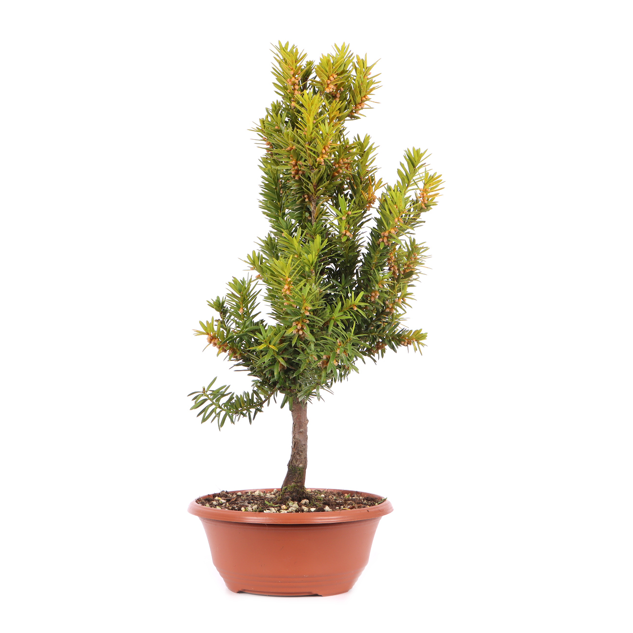 Die Becher-Eibe kann wie eine Gewöhnliche Eibe zum Bonsai kultiviert werden (s. Taxus baccata). Durch die vielen Triebe und die gute Verzweigung hat sie ein gutes Potential dazu. Unsere Becher-Eiben sind aus Stecklingen vermehrt und daher ohne Veredelungsstelle.