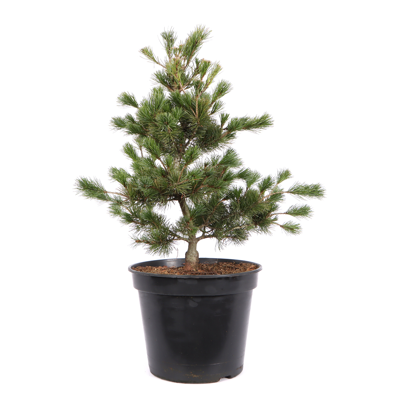 Die Mädchenkiefer hat in Japan aufgrund ihrer Symbolik (Männlichkeit, Stärke, langes Leben) einen sehr hohen Stellenwert und ist vielleicht der beliebteste Bonsai überhaupt. Sie ist robust und bietet viele gestalterische Möglichkeiten. Als Bonsai strahlen sie durch ihren derben Charakter viel Kraft aus. Andererseits zeigt die gestaltete Kiefer im Vergleich zu Laubbäumen wenig Veränderung und vermittelt dem Betrachter dadurch im Jahresverlauf viel Ruhe. Eine gestaltete Kiefer ist im Grunde sehr pflegeleicht. Die neuen Triebe (Kerzen) werden im Mai eingekürzt bzw. mit den Fingern gebrochen und zu dichte Astpartien werden im Spätsommer ausgelichtet. Im Sommer ist ein sonniger Standort sehr von Vorteil. Kiefern sollten nicht zu nass gehalten werden. Bei langen Regenperioden empfiehlt es sich die Pflanze sogar unter ein Dach zu stellen. Drahten und Gestalten kann man das ganze Jahr über. Dies sollte aber nicht mit dem Umtopfen Anfang September zusammen fallen. Außerdem muss die Pflanze nach der Gestaltung am besten frostfrei stehen. Bei dem Substrat verwendet man eine strukturstabile, luftige Mischung und achtet auf das Vorhandensein von Mykorrhiza-Pilzen. Man erkennt den Pilz an einem gleichmäßigen, feinen und weißen Belag, der die Wurzeln umhüllt und im Optimalfall die ganze Erde durchzieht. Kiefern sind sehr frosthart. Trotzdem sollten sie im Winter vor trockenen Winden geschützt werden. Bonsai-Sämlinge von der Mädchenkiefer haben sich in Mitteleuropa nicht bewährt bzw. gehen nach gewisser Zeit meistens ein. Wir bieten ausschließlich Veredelungen an, da die Wurzeln der Unterlage (z.B. Pinus thunbergii) besser an unser Klima angepasst sind.