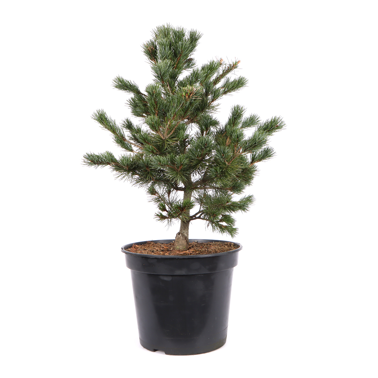 Die Mädchenkiefer (Pinus parviflora) wächst in den Gebirgswäldern Japans. Sie erreicht dort eine Höhe von bis zu 25 Metern. Am Anfang ist die Krone kegelförmig und später ehr flach und unregelmäßig, ähnlich wie bei der uns bekannten Waldkiefer. Die nadelförmigen Blätter sind immergrün und stehen zu fünft in Büscheln. Die Nadeln haben weiße Stomalinien und sind insgesamt blaugrün bis blaugrau gefärbt.