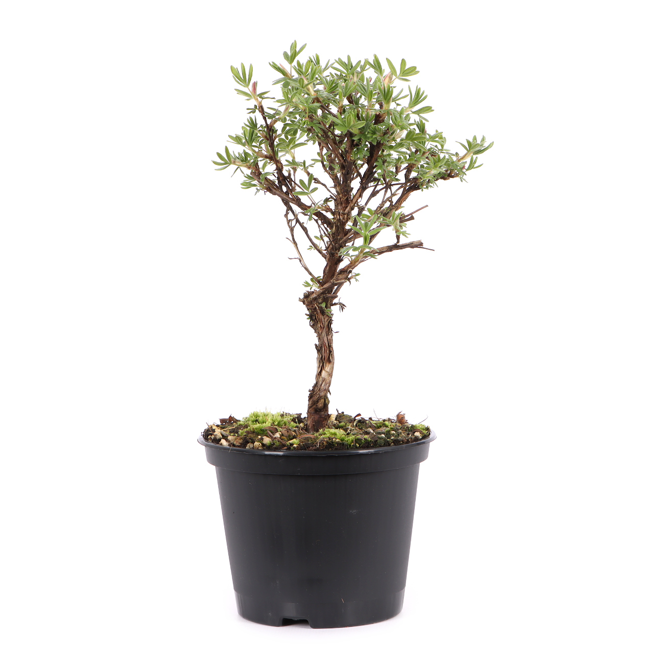 Der Fingerstrauch hat optimale Eigenschaften um ganz besondere Bonsais zu gestalten. Die Blätter sind klein und filigran und verfärben sich gelborange im Herbst. Die Pflanze ist sehr schnittverträglich und bildet viele zum Teil sehr feine Äste. Die Rinde ist rotbraun und löst sich in dünnen Streifen, ähnlich wie bei einem Wacholder. Nicht zuletzt blüht der Fingerstrauch unermüdlich und mehrmals im Jahr. Insgesamt ist die Pflanze auch sehr robust und verzeiht den einen oder anderen Pflegefehler. Der Fingerstrauch sollte für eine optimale Blüte sonnig stehen. An sehr heißen Tagen muss man jedoch auf eine ausreichende Bewässerung achten oder die Pflanze etwas geschützt stellen. Das Wurzelwachstum ist stark und die Pflanzen müssen regelmäßig umgetopft werden.