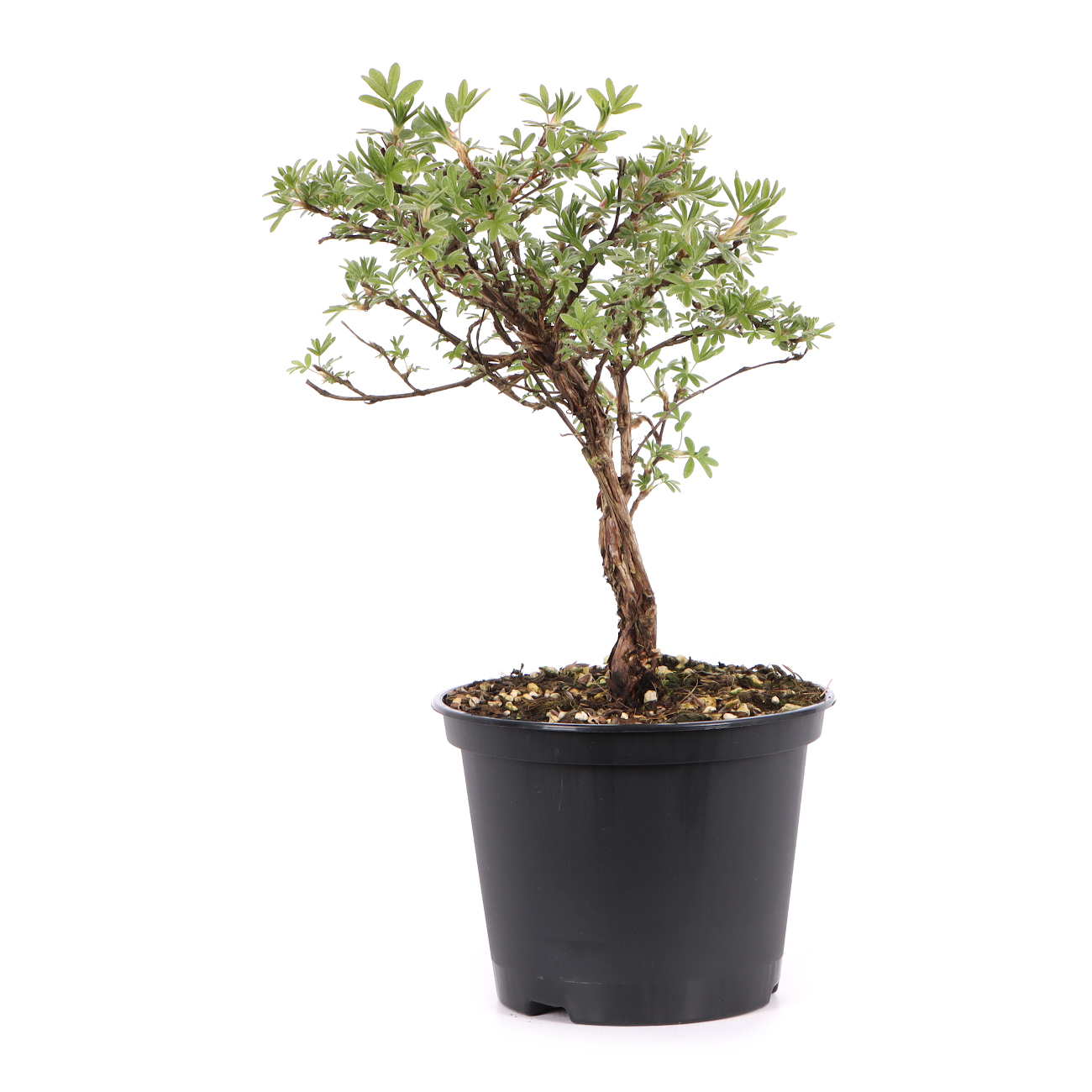 Der Fingerstrauch hat optimale Eigenschaften um ganz besondere Bonsais zu gestalten. Die Blätter sind klein und filigran und verfärben sich gelborange im Herbst. Die Pflanze ist sehr schnittverträglich und bildet viele zum Teil sehr feine Äste. Die Rinde ist rotbraun und löst sich in dünnen Streifen, ähnlich wie bei einem Wacholder. Nicht zuletzt blüht der Fingerstrauch unermüdlich und mehrmals im Jahr. Insgesamt ist die Pflanze auch sehr robust und verzeiht den einen oder anderen Pflegefehler. Der Fingerstrauch sollte für eine optimale Blüte sonnig stehen. An sehr heißen Tagen muss man jedoch auf eine ausreichende Bewässerung achten oder die Pflanze etwas geschützt stellen. Das Wurzelwachstum ist stark und die Pflanzen müssen regelmäßig umgetopft werden.