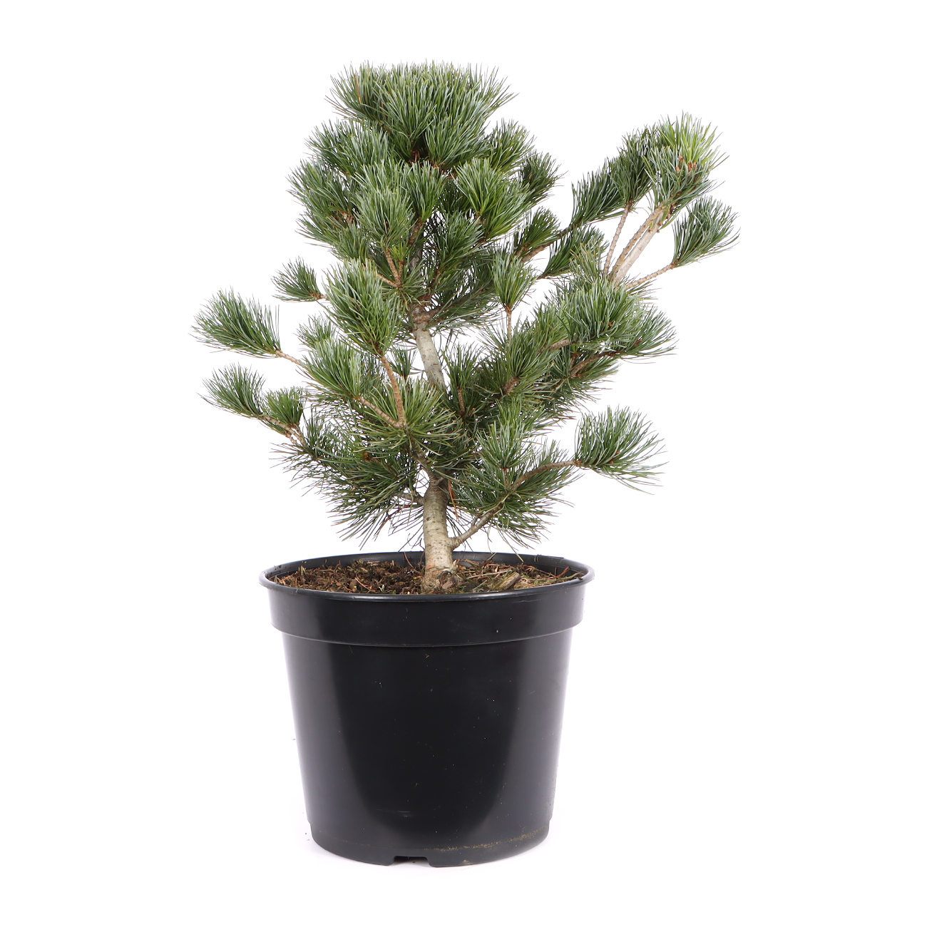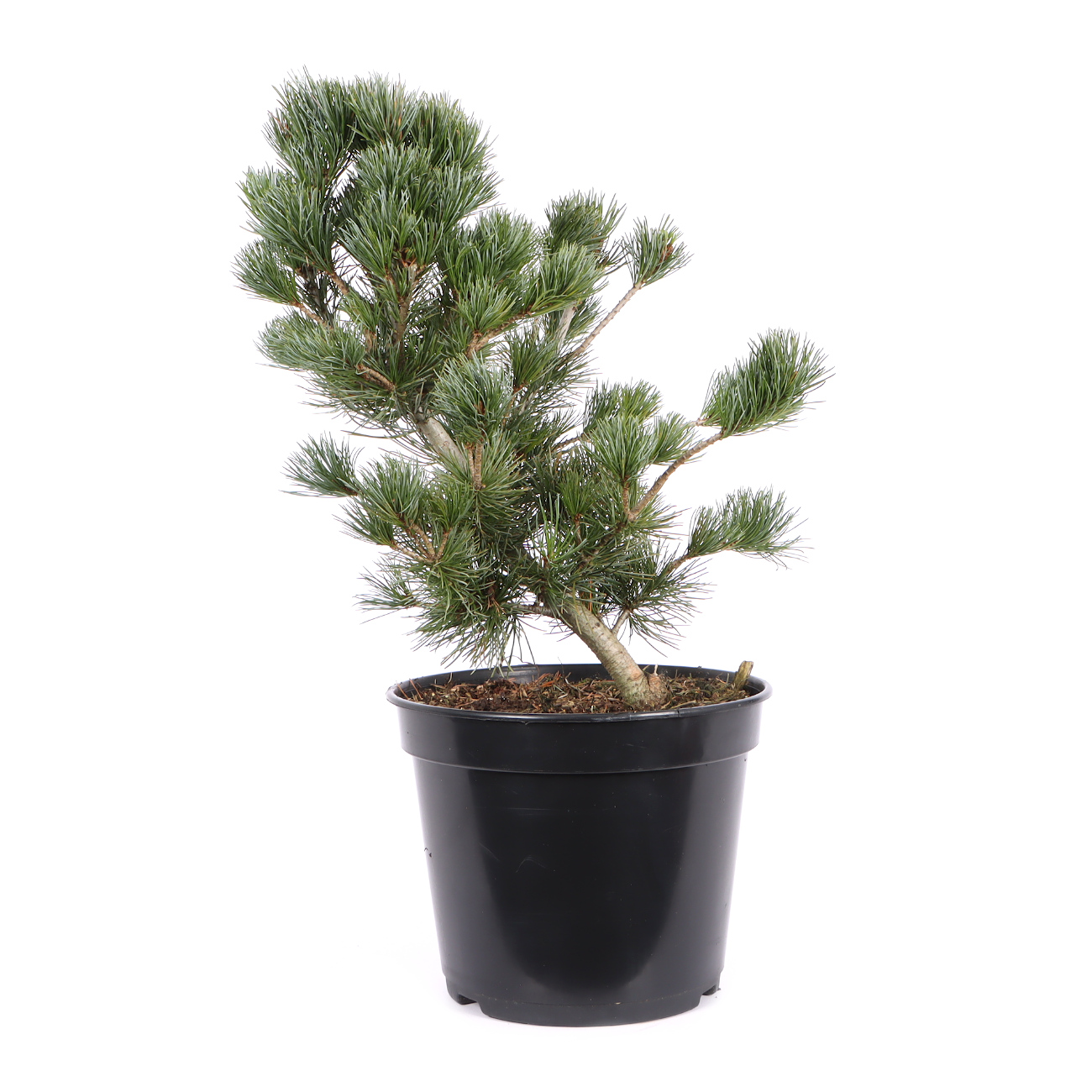 Die Mädchenkiefer hat in Japan aufgrund ihrer Symbolik (Männlichkeit, Stärke, langes Leben) einen sehr hohen Stellenwert und ist vielleicht der beliebteste Bonsai überhaupt. Sie ist robust und bietet viele gestalterische Möglichkeiten. Als Bonsai strahlen sie durch ihren derben Charakter viel Kraft aus. Andererseits zeigt die gestaltete Kiefer im Vergleich zu Laubbäumen wenig Veränderung und vermittelt dem Betrachter dadurch im Jahresverlauf viel Ruhe. Eine gestaltete Kiefer ist im Grunde sehr pflegeleicht. Die neuen Triebe (Kerzen) werden im Mai eingekürzt bzw. mit den Fingern gebrochen und zu dichte Astpartien werden im Spätsommer ausgelichtet. Im Sommer ist ein sonniger Standort sehr von Vorteil. Kiefern sollten nicht zu nass gehalten werden. Bei langen Regenperioden empfiehlt es sich die Pflanze sogar unter ein Dach zu stellen. Drahten und Gestalten kann man das ganze Jahr über. Dies sollte aber nicht mit dem Umtopfen Anfang September zusammen fallen. Außerdem muss die Pflanze nach der Gestaltung am besten frostfrei stehen. Bei dem Substrat verwendet man eine strukturstabile, luftige Mischung und achtet auf das Vorhandensein von Mykorrhiza-Pilzen. Man erkennt den Pilz an einem gleichmäßigen, feinen und weißen Belag, der die Wurzeln umhüllt und im Optimalfall die ganze Erde durchzieht. Kiefern sind sehr frosthart. Trotzdem sollten sie im Winter vor trockenen Winden geschützt werden. Bonsai-Sämlinge von der Mädchenkiefer haben sich in Mitteleuropa nicht bewährt bzw. gehen nach gewisser Zeit meistens ein. Wir bieten ausschließlich Veredelungen an, da die Wurzeln der Unterlage (z.B. Pinus thunbergii) besser an unser Klima angepasst sind.