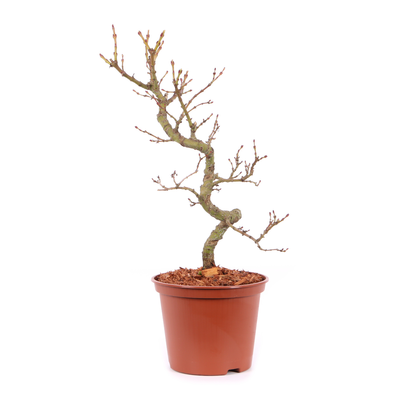 Der Fächer-Ahorn ist wohl der bekannteste asiatische Laubbaum für die Bonsaigestaltung. Die filigrane Verzweigung mit den zarten Blättern verleiht dem Bonsai oft ein sehr anmutiges und graziles Erscheinungsbild. Auch die leuchtende Herbstfärbung ist eine Bereicherung für jede Bonsaisammlung. Für alle Fächer-Ahorne ist ein heller Standort im Freien wichtig. Je heller die Pflanzen stehen, umso kräftiger ist die Blattfärbung. Nur an extrem trockenen und heißen Sommertagen müssen sie schattiert werden. Der Ahorn verträgt keinen verdichteten, schlecht belüfteten und staunassen Boden. Hier kommt es schnell zu Wurzel- bzw. Pilzerkrankungen. Die Erde sollte aber auch besonders im Sommer nicht austrocknen. Also verwendet man am besten ein lockeres Substrat und führt einen regelmäßigen Wurzelschnitt und ein Umtopfen in frisches Substrat im Frühjahr durch. Wenn möglich, benutzt man Regenwasser oder weiches Leitungswasser zum Gießen. Hartes Wasser unbedingt vermeiden. Gedüngt wird in der Wachstumszeit von Mai bis Oktober. Nach unseren Erfahrungen ist ein Formschnitt im Juni, verbunden mit einem Blattschnitt, ideal. Dadurch vermeidet man das „Ausbluten“ von Ästen, die Wunden verheilen sehr schnell und der Neuaustrieb ist nicht zu stark. Die neu gebildeten Blätter sind außerdem kleiner und kräftiger gefärbt. Wunden sollten direkt mit einem Wundverschlussmittel behandelt werden, um das Eindringen von Krankheitserregern zu verhindern. Im Winter ist ein guter Frostschutz sinnvoll.