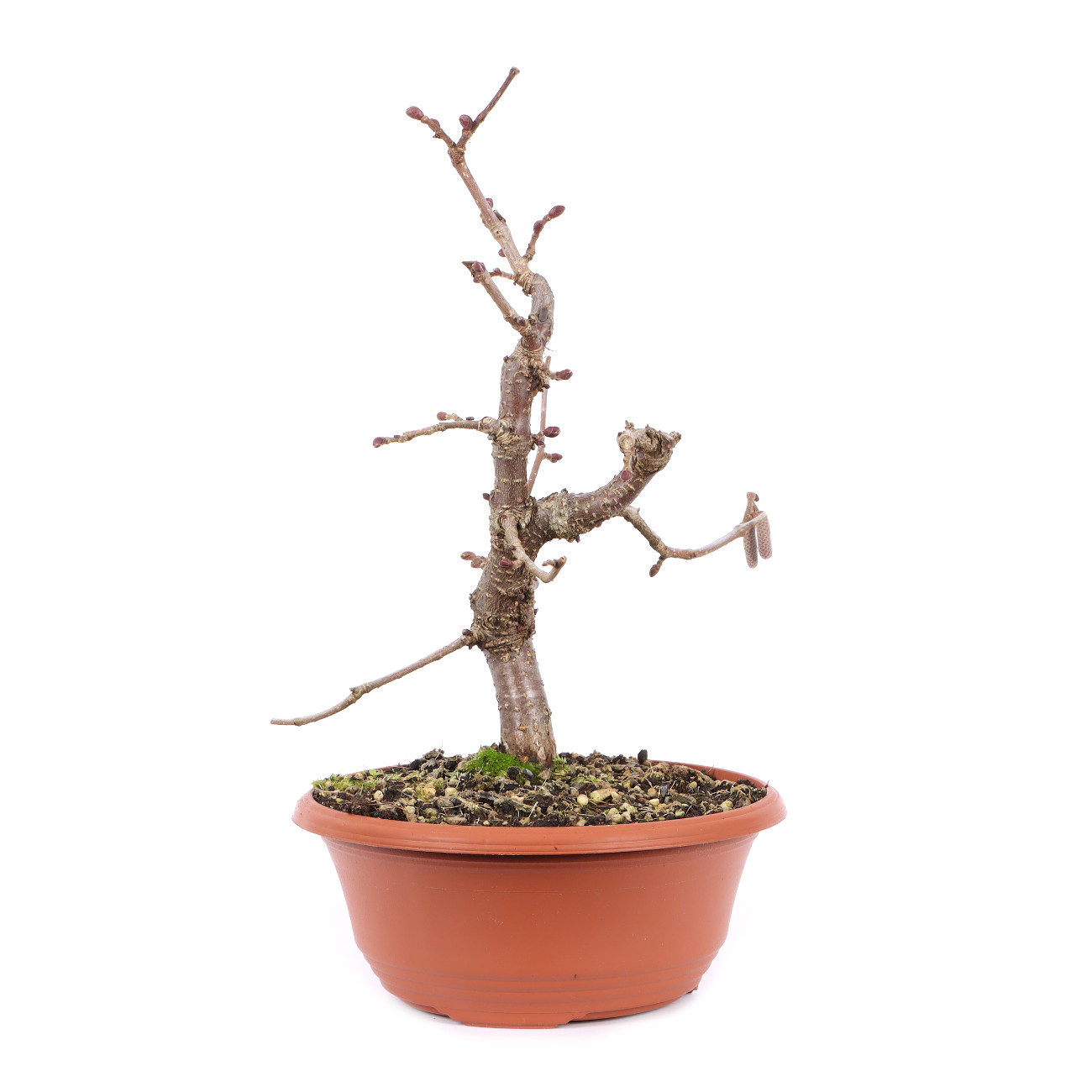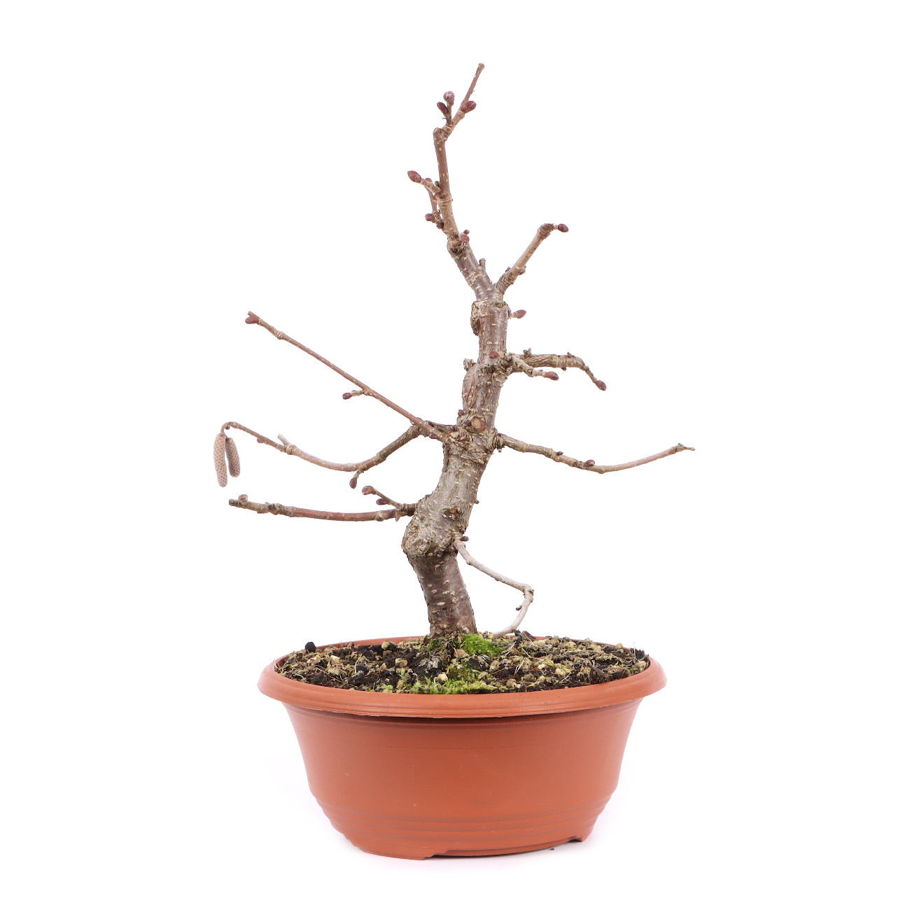 Die ‘Rotblättrige Zellernuss‘ hat im Austrieb hell- bis dunkelrote Blätter, die sich bis zum Sommer wieder dunkelgrün verfärben. Somit hat man mit dieser Haselnusssorte schon im Frühjahr ein besonderes Farbspiel innerhalb der Bonsaisammlung. Auch die roten Blüte und Früchte sind sehr dekorativ und die sich später entwickelnden Nüsse sind wie bei der Art essbar.