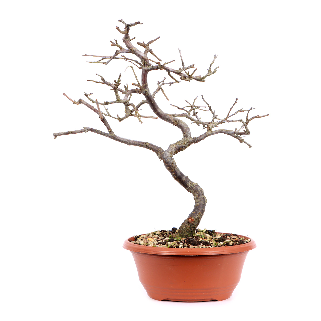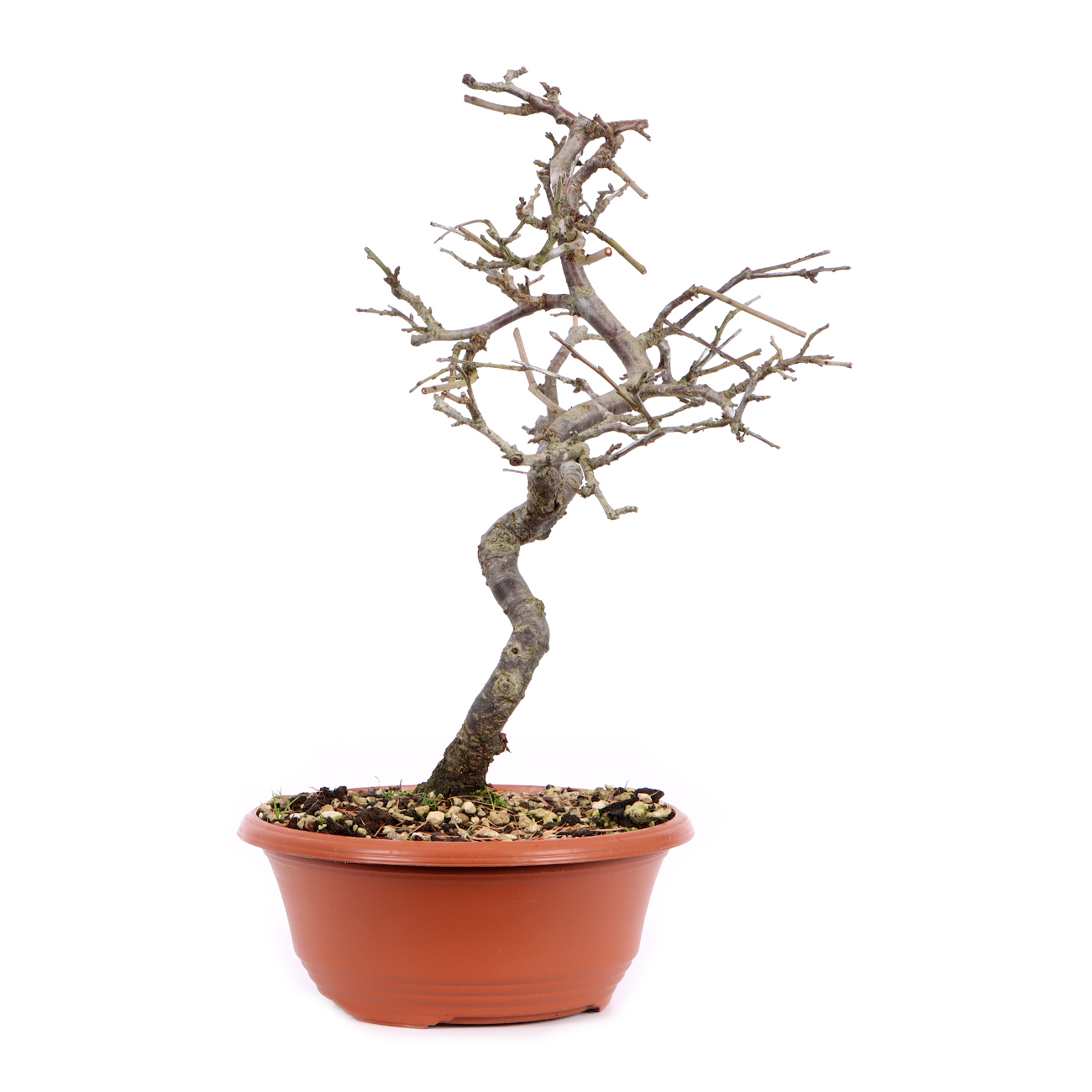 Schlehen entwickeln sich zu unglaublich schönen Bonsais. Alte Exemplare sind reich verzweigt und die tiefschwarze Rinde ist ein toller Kontrast zu den weißen Blüten im Frühjahr. Auch die blauen Früchte in der grünen und später kahlen Krone sind sehr zierend. Darüber hinaus ist die Art sehr robust und anpassungsfähig. Ein heller Standort, eine gute Wasser- und Nährstoffversorgung sowie das regelmäßige Umtopfen sorgen für eine gesunde Entwicklung. Schlehen sind frosthart, aber wie alle Bonsai sind die frischen Wurzeln im Frühjahr spätfrostempfindlich.