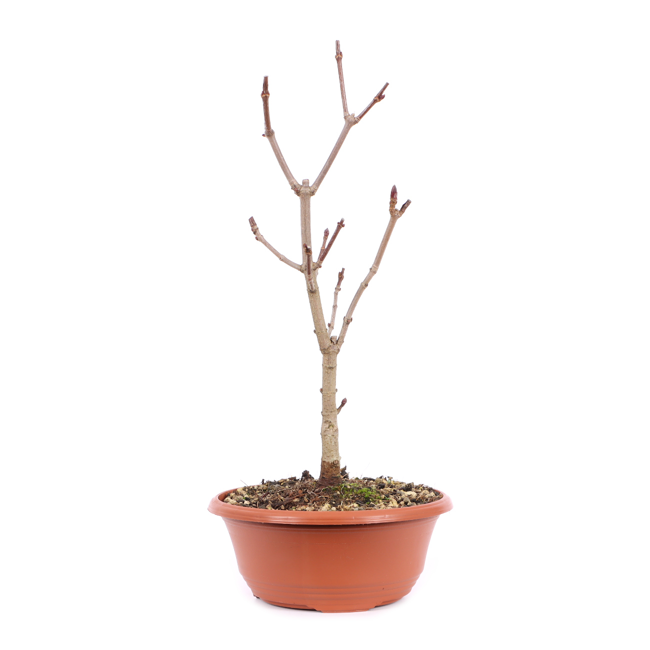 Unter den vielen Ahorn-Sorten ist der heimische Spitz-Ahorn sicherlich am anspruchslosesten. Der Spitz-Ahorn stellt keine besonderen Ansprüche an Erde und Wasser. Was viele Ahorn-Arten nicht vertragen, wie z. B. hartes Wasser (bzw. hoher Salzgehalt), macht dem Spitz-Ahorn ebenso wenig aus wie ein windiger Platz in praller Sonne. Wichtig hierbei ist eine ausreichende Bewässerung, die auch zweimal am Tag erforderlich werden kann. Im Winter reicht dem Spitz-Ahorn ein normaler Überwinterungsschutz. Mit der Gestaltung wird es schon etwas schwieriger. Der Austrieb ist stark und die Äste härten relativ schnell aus. Wenn man die jungen Triebe drahtet, muss der Draht rechtzeitig wieder entfernt werden, damit er keine unansehnlichen Spuren hinterlässt. Bei guter und regelmäßiger Pflege kann man aber auch ohne Draht auskommen, da der Spitzahorn sehr willig austreibt. Ein Blattschnitt im zeitigen Sommer hat zur Folge, dass die Pflanze oft an Stellen austreibt, wo man es kaum vermutet. So bekommt man ausreichend Äste für eine gute Gestaltung und die Blätter werden in der Regel etwas kleiner. Wichtig hierbei ist, dass der Ahorn eine ausreichende Düngung bekommt, besonders wenn im Sommer oft gewässert werden muss und er in lockerer, luftiger Erde steht. Sobald der Topf oder die Bonsaischale vollständig durchwurzelt ist und die Luft und Wasserführung der Erde nachlässt, wird ein Umtopfen im Frühjahr vor dem Austrieb notwendig. Dabei kann man auch einen stärkeren Formschnitt durchführen, da der Ahorn nach dem Wurzelschnitt nicht „blutet“.
