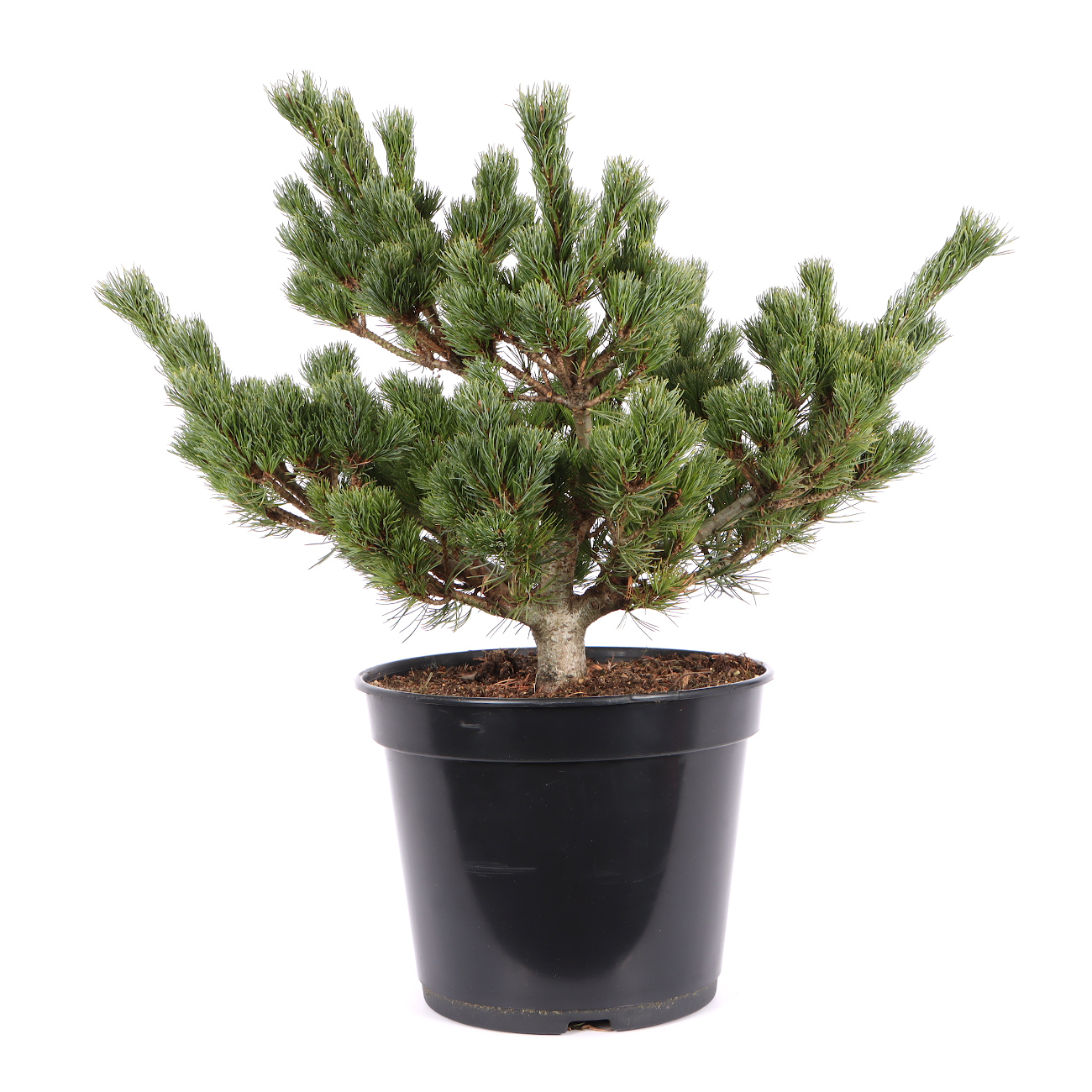 Die Mädchenkiefer hat in Japan aufgrund ihrer Symbolik (Männlichkeit, Stärke, langes Leben) einen sehr hohen Stellenwert und ist vielleicht der beliebteste Bonsai überhaupt. Sie ist robust und bietet viele gestalterische Möglichkeiten. Als Bonsai strahlen sie durch ihren derben Charakter viel Kraft aus. Andererseits zeigt die gestaltete Kiefer im Vergleich zu Laubbäumen wenig Veränderung und vermittelt dem Betrachter dadurch im Jahresverlauf viel Ruhe. Eine gestaltete Kiefer ist im Grunde sehr pflegeleicht. Die neuen Triebe (Kerzen) werden im Mai eingekürzt bzw. mit den Fingern gebrochen und zu dichte Astpartien werden im Spätsommer ausgelichtet. Im Sommer ist ein sonniger Standort sehr von Vorteil. Kiefern sollten nicht zu nass gehalten werden. Bei langen Regenperioden empfiehlt es sich die Pflanze sogar unter ein Dach zu stellen. Drahten und Gestalten kann man das ganze Jahr über. Dies sollte aber nicht mit dem Umtopfen Anfang September zusammen fallen. Außerdem muss die Pflanze nach der Gestaltung am besten frostfrei stehen. Bei dem Substrat verwendet man eine strukturstabile, luftige Mischung und achtet auf das Vorhandensein von Mykorrhiza-Pilzen. Man erkennt den Pilz an einem gleichmäßigen, feinen und weißen Belag, der die Wurzeln umhüllt und im Optimalfall die ganze Erde durchzieht. Kiefern sind sehr frosthart. Trotzdem sollten sie im Winter vor trockenen Winden geschützt werden. Bonsai-Sämlinge von der Mädchenkiefer haben sich in Mitteleuropa nicht bewährt bzw. gehen nach gewisser Zeit meistens ein. Wir bieten ausschließlich Veredelungen an, da die Wurzeln der Unterlage (z.B. Pinus thunbergii) besser an unser Klima angepasst sind.