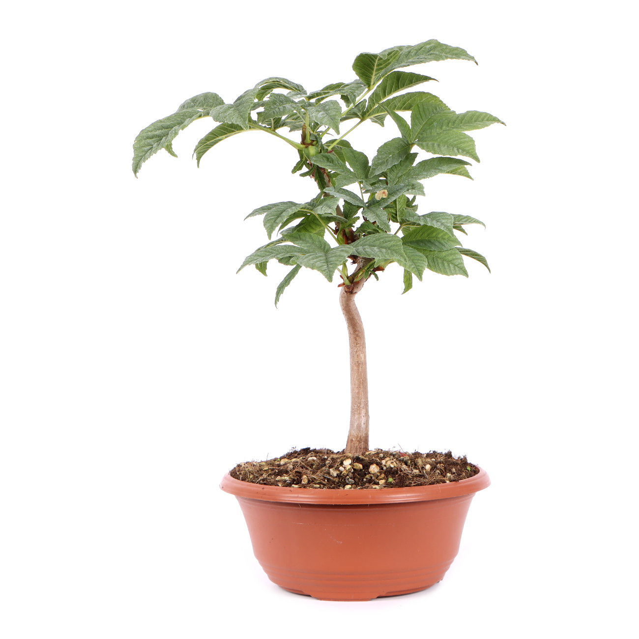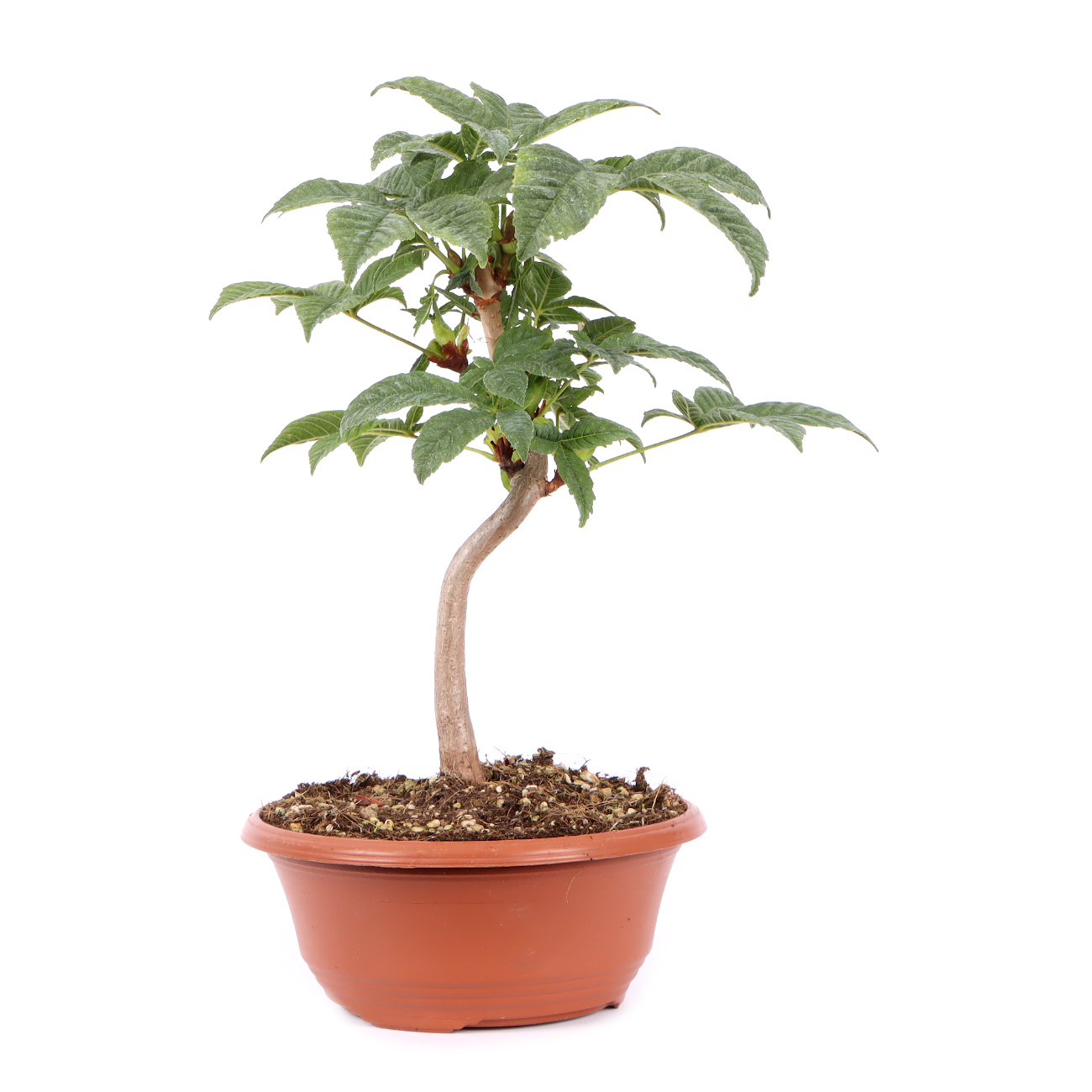 Auch wenn einige Autoren in ihren Büchern Kastanien überspringen oder gar der Meinung sind, Kastanien könne man nicht als Bonsai gestalten, sind wir der gegenteiligen Auffassung. Sicherlich ist die Gestaltung nicht sehr einfach, aber genau da liegt auch ein besonderer Reiz. Rote Fächerahorne oder Mädchenkiefern aus Japan gibt es viele, Kastanien aber nicht. Mit der Gestaltung zum Bonsai muss man früh beginnen, denn lässt man die Kastanie wachsen wie sie will, ist sie nach einem Jahr schon einen Meter hoch. Es hat sich gezeigt, dass das Entfernen der dicken klebrigen Gipfelknospe im Herbst, die Seitenknospen stärkt und somit im Frühjahr eine bessere Verzweigung erfolgen kann. Ist die Verzweigung dann noch nicht gut, kann man im Juni einen vollständigen Blattschnitt vornehmen. Auch ein Formschnitt und das Drahten sind dann möglich. Nach ca. 2 Wochen beginnt dann der kleinere Nachtrieb. Während dieser Zeit ist es ratsam, die Kastanie etwas schattiger zu stellen, ansonsten sollte der Standort hell und sonnig sein. Eine regelmäßige Düngung und gute Erde ist, wie bei allen Bonsai, sehr wichtig. Wichtig ist auch das regelmäßige Umtopfen, da die Kastanie ein sehr üppiges Wurzelwachstum hat. Im Sommer kann es vorkommen, dass sie von der Blattfleckenkrankheit oder der Miniermotte befallen wird. Hier empfiehlt sich ebenfalls ein Blattschnitt. Die Kastanie ist ansonsten sehr robust und ausgesprochen winterhart. Da die Kastanie aber einer der ersten Bäume ist, die im Frühjahr ihr Laub bekommt, muss sie vor Spätfrösten geschützt werden.