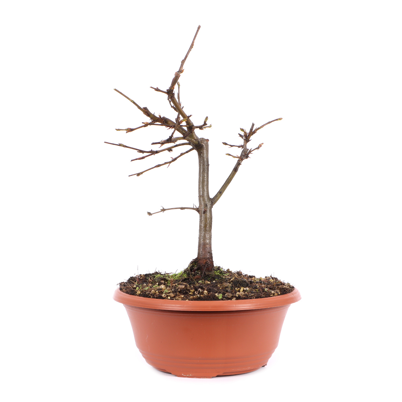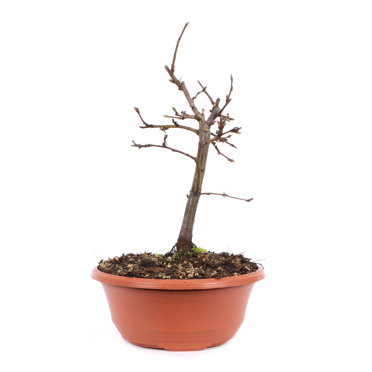 Von den heimischen Bäumen ist die Hainbuche (oder auch Weißbuche genannt) sicherlich am einfachsten zu gestalten. Durch ihre gute Schnittverträglichkeit und ihre Wuchsfreudigkeit hat man in kürzester Zeit ansehnliche kleine Bäume. Ihre glatte Rinde und die am Stamm auftretenden unregelmäßigen Wülste sehen bei frei aufrechten Formen am interessantesten aus. Die Hainbuche treibt den ganzen Sommer kräftig durch, so dass ein ständiges zurückschneiden notwendig ist. Bei extremer Hitze empfiehlt es sich die Pflanze etwas schattiger zu stellen, um Blattverbrennungen zu vermeiden. Wer ein schnelles Dickenwachstum der Äste und des Stammes fördern will, pflanzt die Hainbuche in das Freiland oder in einen überdimensionierten Topf und schneidet während des ganzen Sommers nicht. Erst im Frühjahr wird die Hainbuche dann stark zurückgenommen. Es ist sogar möglich, alle Äste bis auf den Stamm zurückzuschneiden. Im folgenden Sommer werden die frischen Triebe wiederum nicht geschnitten. Erst im Winter oder Frühjahr wird der Baum neu aufgebaut und in eine Schale getopft. Der Zeitpunkt des Umtopfens sollte nicht zu spät gelegt werden, da nach unseren Erfahrungen Hainbuchen, die im Austrieb umgetopft wurden, starke Probleme beim Anwachsen hatten. Während der folgenden Wachstumsperiode werden die frischen Triebe rechtzeitig eingekürzt, um eine feine Verzweigung zu erreichen. An den Standort stellt die Hainbuche keine großen Ansprüche, nur in extrem warmen Sommermonaten ist eine Beschattung während der Mittagszeit sinnvoll. Im Winter sollte die Pflanze nicht austrocknen. Ideal ist eine geschützte Überwinterung in einem nicht beheizten Glas- oder Folienhaus. Bei Spätfrösten muss die Pflanze ebenfalls geschützt werden.