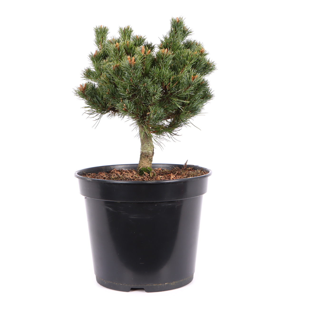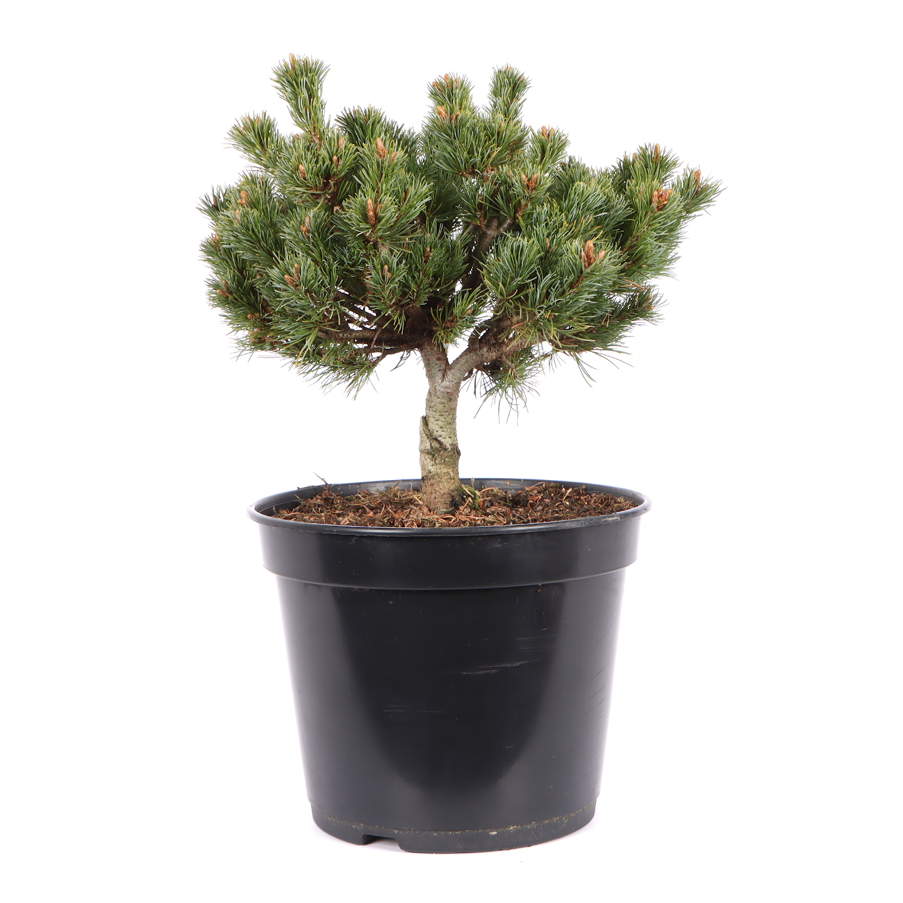 Die Mädchenkiefer hat in Japan aufgrund ihrer Symbolik (Männlichkeit, Stärke, langes Leben) einen sehr hohen Stellenwert und ist vielleicht der beliebteste Bonsai überhaupt. Sie ist robust und bietet viele gestalterische Möglichkeiten. Als Bonsai strahlen sie durch ihren derben Charakter viel Kraft aus. Andererseits zeigt die gestaltete Kiefer im Vergleich zu Laubbäumen wenig Veränderung und vermittelt dem Betrachter dadurch im Jahresverlauf viel Ruhe. Eine gestaltete Kiefer ist im Grunde sehr pflegeleicht. Die neuen Triebe (Kerzen) werden im Mai eingekürzt bzw. mit den Fingern gebrochen und zu dichte Astpartien werden im Spätsommer ausgelichtet. Im Sommer ist ein sonniger Standort sehr von Vorteil. Kiefern sollten nicht zu nass gehalten werden. Bei langen Regenperioden empfiehlt es sich die Pflanze sogar unter ein Dach zu stellen. Drahten und Gestalten kann man das ganze Jahr über. Dies sollte aber nicht mit dem Umtopfen Anfang September zusammen fallen. Außerdem muss die Pflanze nach der Gestaltung am besten frostfrei stehen. Bei dem Substrat verwendet man eine strukturstabile, luftige Mischung und achtet auf das Vorhandensein von Mykorrhiza-Pilzen. Man erkennt den Pilz an einem gleichmäßigen, feinen und weißen Belag, der die Wurzeln umhüllt und im Optimalfall die ganze Erde durchzieht. Kiefern sind sehr frosthart. Trotzdem sollten sie im Winter vor trockenen Winden geschützt werden. Bonsai-Sämlinge von der Mädchenkiefer haben sich in Mitteleuropa nicht bewährt bzw. gehen nach gewisser Zeit meistens ein. Wir bieten ausschließlich Veredelungen an, da die Wurzeln der Unterlage (z.B. Pinus thunbergii) besser an unser Klima angepasst sind.