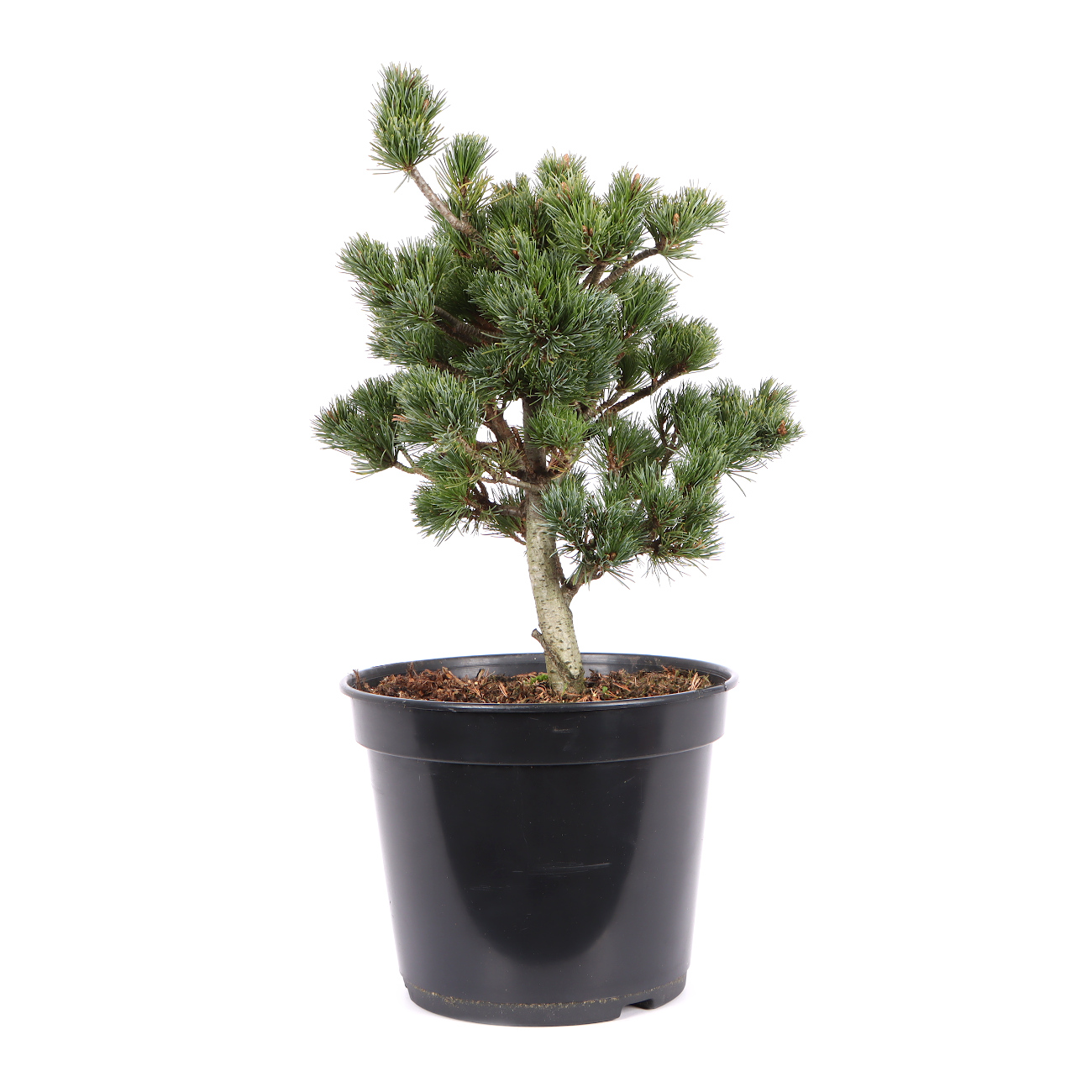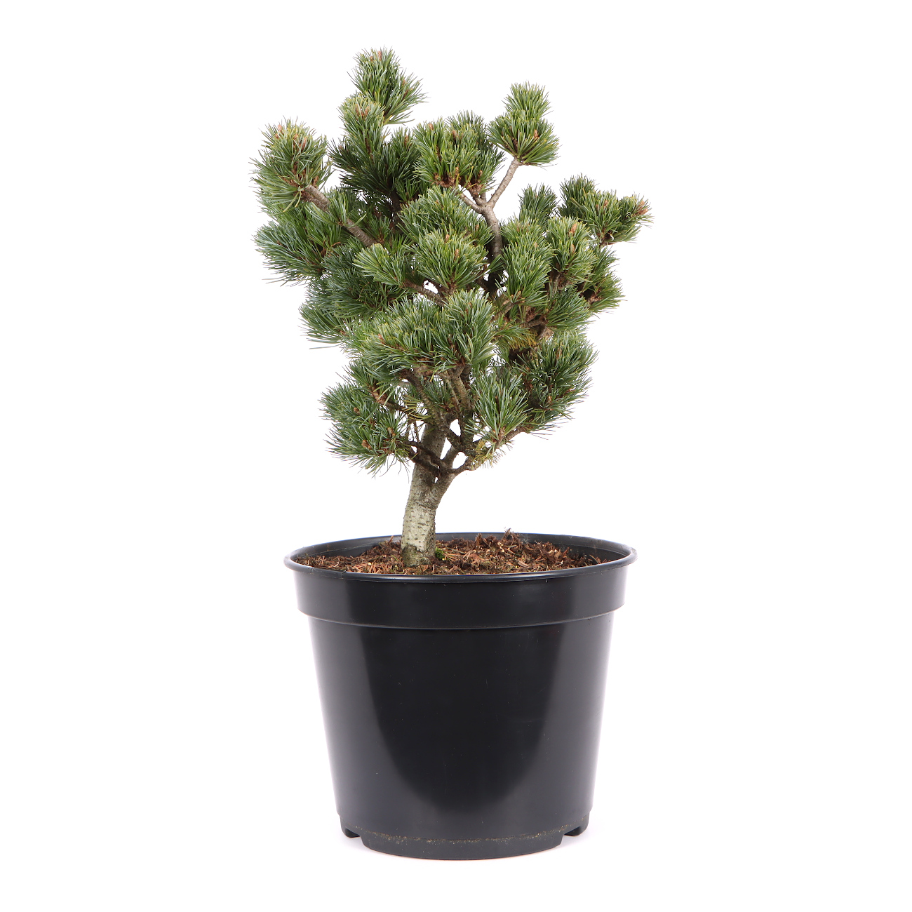 Die Mädchenkiefer hat in Japan aufgrund ihrer Symbolik (Männlichkeit, Stärke, langes Leben) einen sehr hohen Stellenwert und ist vielleicht der beliebteste Bonsai überhaupt. Sie ist robust und bietet viele gestalterische Möglichkeiten. Als Bonsai strahlen sie durch ihren derben Charakter viel Kraft aus. Andererseits zeigt die gestaltete Kiefer im Vergleich zu Laubbäumen wenig Veränderung und vermittelt dem Betrachter dadurch im Jahresverlauf viel Ruhe. Eine gestaltete Kiefer ist im Grunde sehr pflegeleicht. Die neuen Triebe (Kerzen) werden im Mai eingekürzt bzw. mit den Fingern gebrochen und zu dichte Astpartien werden im Spätsommer ausgelichtet. Im Sommer ist ein sonniger Standort sehr von Vorteil. Kiefern sollten nicht zu nass gehalten werden. Bei langen Regenperioden empfiehlt es sich die Pflanze sogar unter ein Dach zu stellen. Drahten und Gestalten kann man das ganze Jahr über. Dies sollte aber nicht mit dem Umtopfen Anfang September zusammen fallen. Außerdem muss die Pflanze nach der Gestaltung am besten frostfrei stehen. Bei dem Substrat verwendet man eine strukturstabile, luftige Mischung und achtet auf das Vorhandensein von Mykorrhiza-Pilzen. Man erkennt den Pilz an einem gleichmäßigen, feinen und weißen Belag, der die Wurzeln umhüllt und im Optimalfall die ganze Erde durchzieht. Kiefern sind sehr frosthart. Trotzdem sollten sie im Winter vor trockenen Winden geschützt werden. Bonsai-Sämlinge von der Mädchenkiefer haben sich in Mitteleuropa nicht bewährt bzw. gehen nach gewisser Zeit meistens ein. Wir bieten ausschließlich Veredelungen an, da die Wurzeln der Unterlage (z.B. Pinus thunbergii) besser an unser Klima angepasst sind.