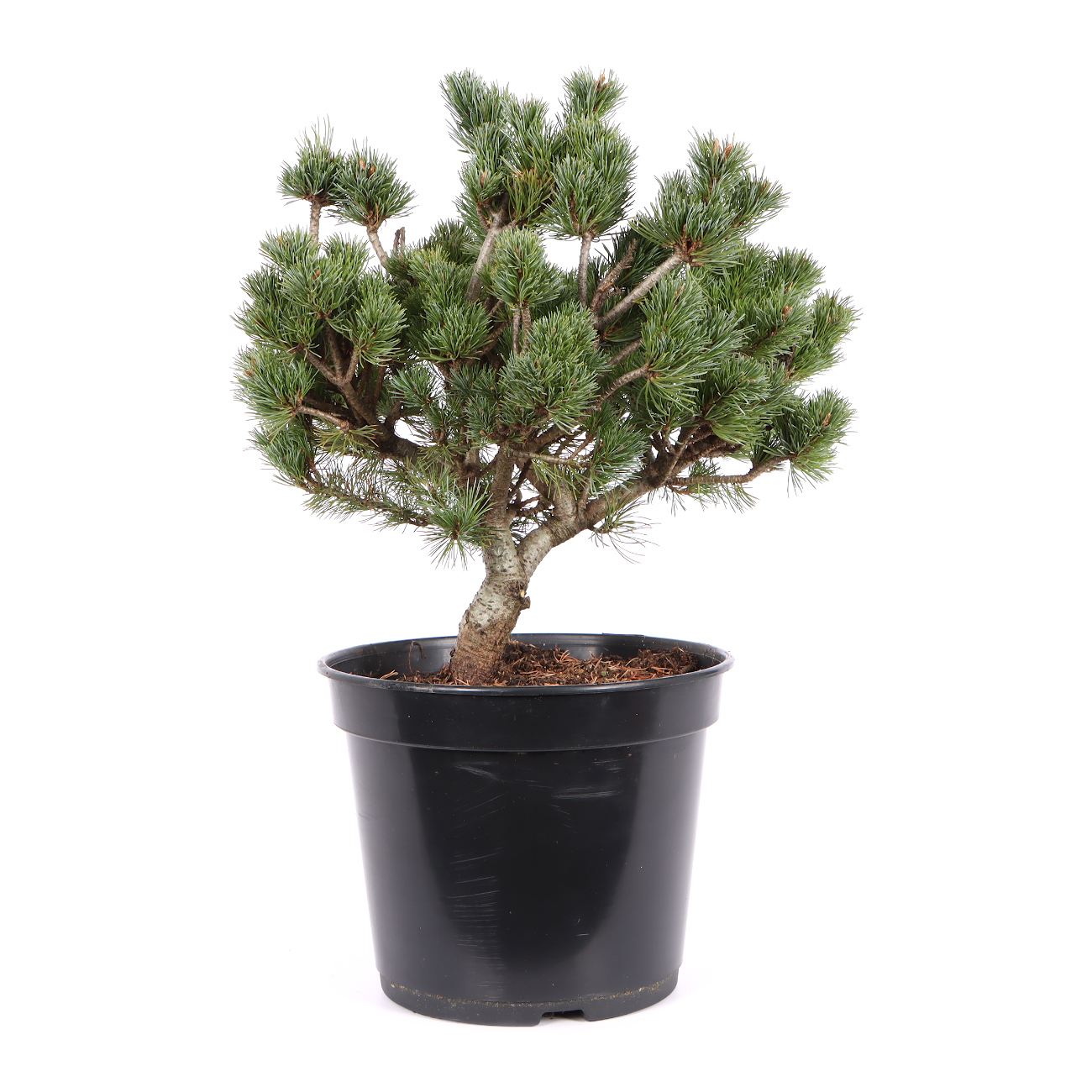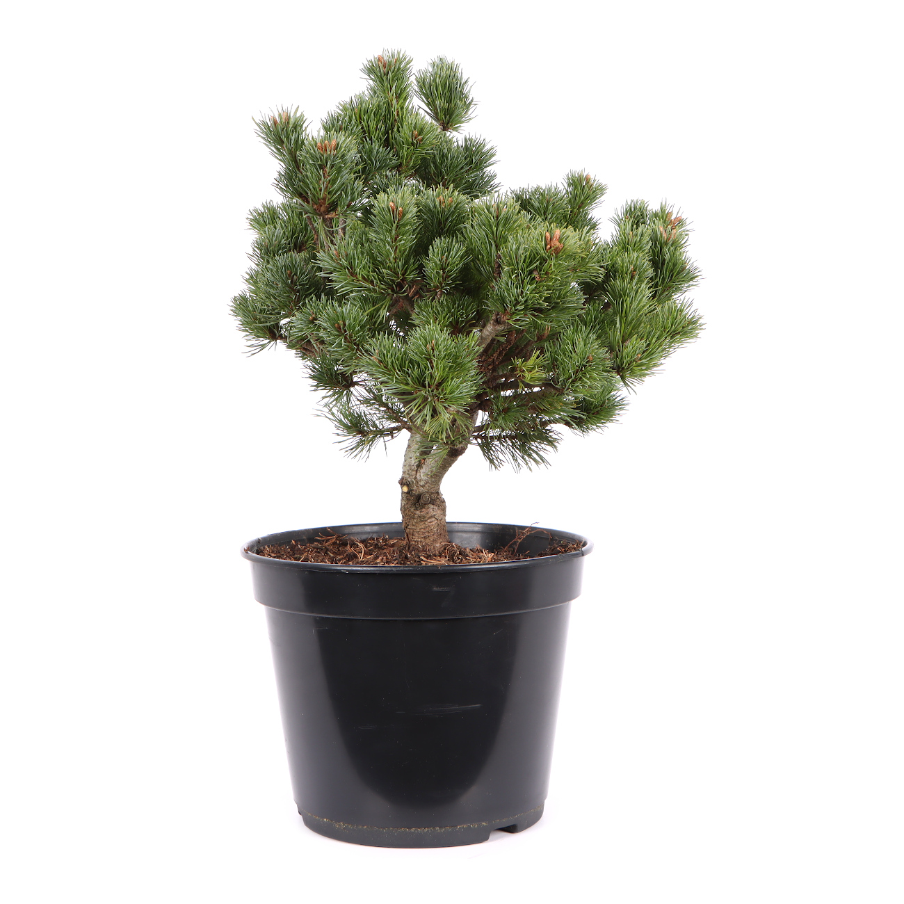 Die Mädchenkiefer hat in Japan aufgrund ihrer Symbolik (Männlichkeit, Stärke, langes Leben) einen sehr hohen Stellenwert und ist vielleicht der beliebteste Bonsai überhaupt. Sie ist robust und bietet viele gestalterische Möglichkeiten. Als Bonsai strahlen sie durch ihren derben Charakter viel Kraft aus. Andererseits zeigt die gestaltete Kiefer im Vergleich zu Laubbäumen wenig Veränderung und vermittelt dem Betrachter dadurch im Jahresverlauf viel Ruhe. Eine gestaltete Kiefer ist im Grunde sehr pflegeleicht. Die neuen Triebe (Kerzen) werden im Mai eingekürzt bzw. mit den Fingern gebrochen und zu dichte Astpartien werden im Spätsommer ausgelichtet. Im Sommer ist ein sonniger Standort sehr von Vorteil. Kiefern sollten nicht zu nass gehalten werden. Bei langen Regenperioden empfiehlt es sich die Pflanze sogar unter ein Dach zu stellen. Drahten und Gestalten kann man das ganze Jahr über. Dies sollte aber nicht mit dem Umtopfen Anfang September zusammen fallen. Außerdem muss die Pflanze nach der Gestaltung am besten frostfrei stehen. Bei dem Substrat verwendet man eine strukturstabile, luftige Mischung und achtet auf das Vorhandensein von Mykorrhiza-Pilzen. Man erkennt den Pilz an einem gleichmäßigen, feinen und weißen Belag, der die Wurzeln umhüllt und im Optimalfall die ganze Erde durchzieht. Kiefern sind sehr frosthart. Trotzdem sollten sie im Winter vor trockenen Winden geschützt werden. Bonsai-Sämlinge von der Mädchenkiefer haben sich in Mitteleuropa nicht bewährt bzw. gehen nach gewisser Zeit meistens ein. Wir bieten ausschließlich Veredelungen an, da die Wurzeln der Unterlage (z.B. Pinus thunbergii) besser an unser Klima angepasst sind.