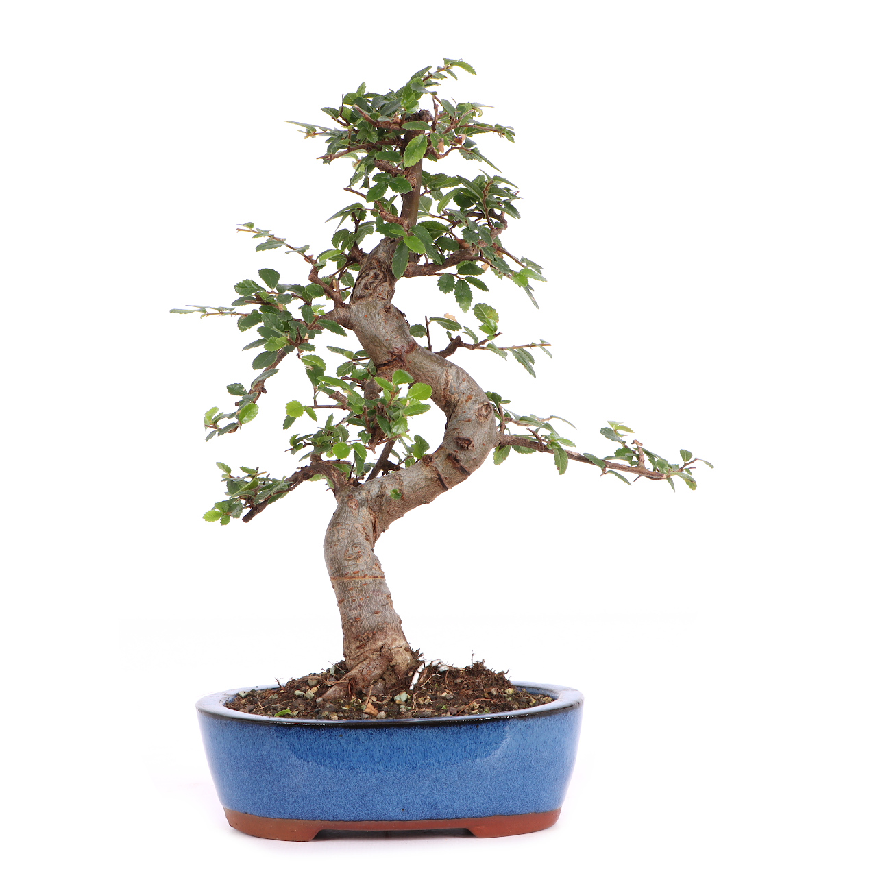 There is hardly any other plant that is so suitable for bonsai culture as the Chinese elm. It is very easy to cut and particularly easy to care for. It tolerates a wide variety of site conditions and is tolerant of cultural errors. Due to the small leaves, the proportions appear very harmonious within the design. This species can also be raised to expressive trees simply by pruning. The branches can also be wired without any problems. For healthy growth, we recommend a bright location (in summer also outdoors) as well as adequate irrigation and fertilization. New shoots are initially allowed to grow, but before they get too long or begin to harden, they are cut back. This leaves 2 to 3 new leaves on the shoot. In winter, the Chinese elm is best placed a little cooler (5 ° C). In warmer temperatures, it also grows in winter, which, due to the lack of light, usually leads to elongated and unsuitable shoots.