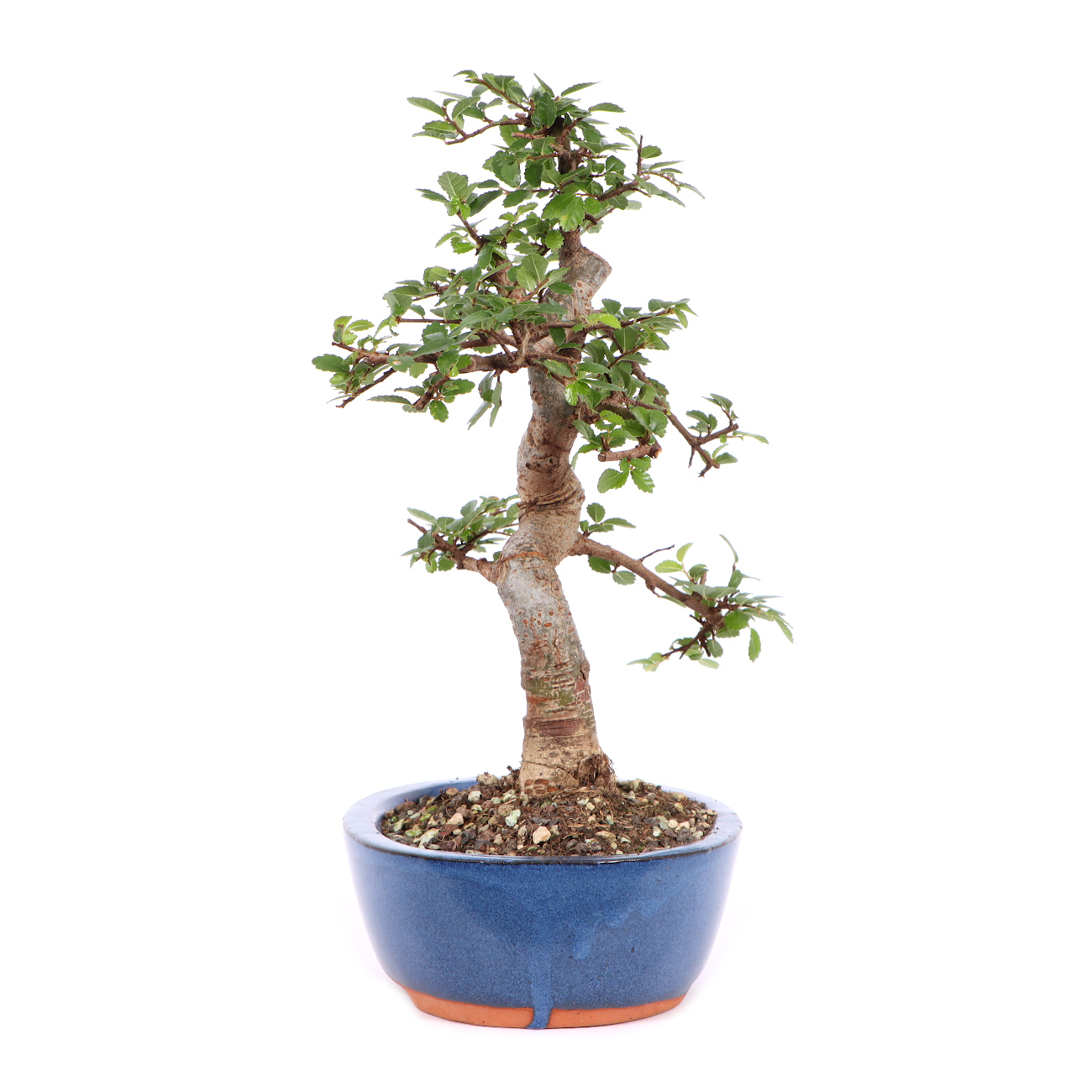 There is hardly any other plant that is so suitable for bonsai culture as the Chinese elm. It is very easy to cut and particularly easy to care for. It tolerates a wide variety of site conditions and is tolerant of cultural errors. Due to the small leaves, the proportions appear very harmonious within the design. This species can also be raised to expressive trees simply by pruning. The branches can also be wired without any problems. For healthy growth, we recommend a bright location (in summer also outdoors) as well as adequate irrigation and fertilization. New shoots are initially allowed to grow, but before they get too long or begin to harden, they are cut back. This leaves 2 to 3 new leaves on the shoot. In winter, the Chinese elm is best placed a little cooler (5 ° C). In warmer temperatures, it also grows in winter, which, due to the lack of light, usually leads to elongated and unsuitable shoots.