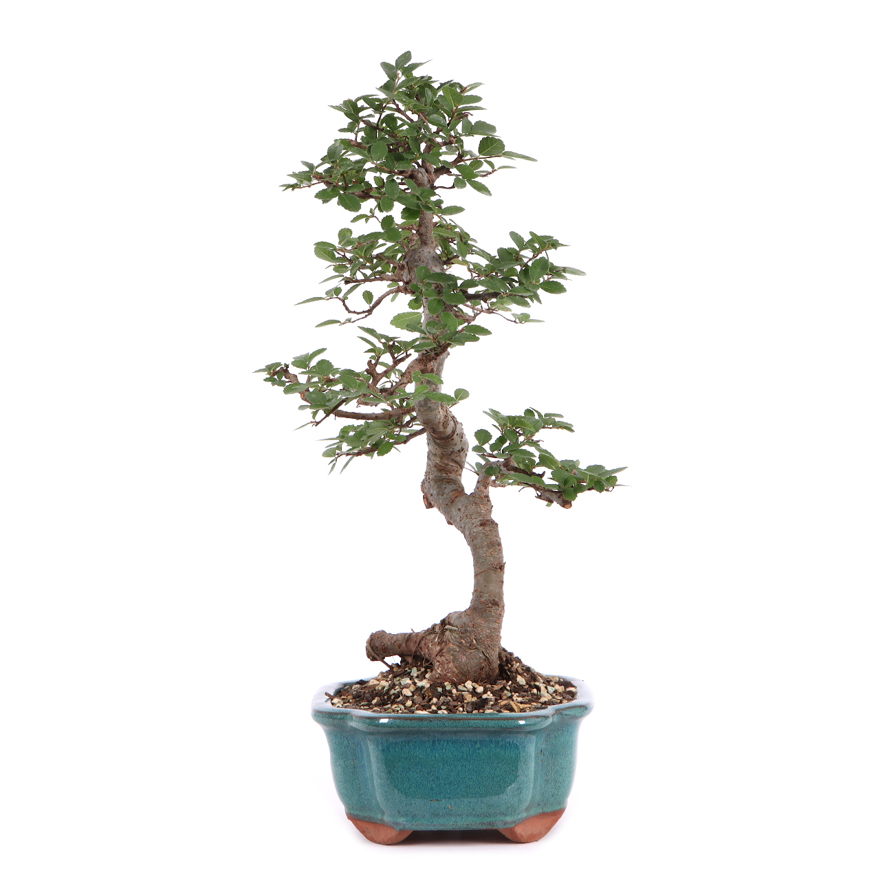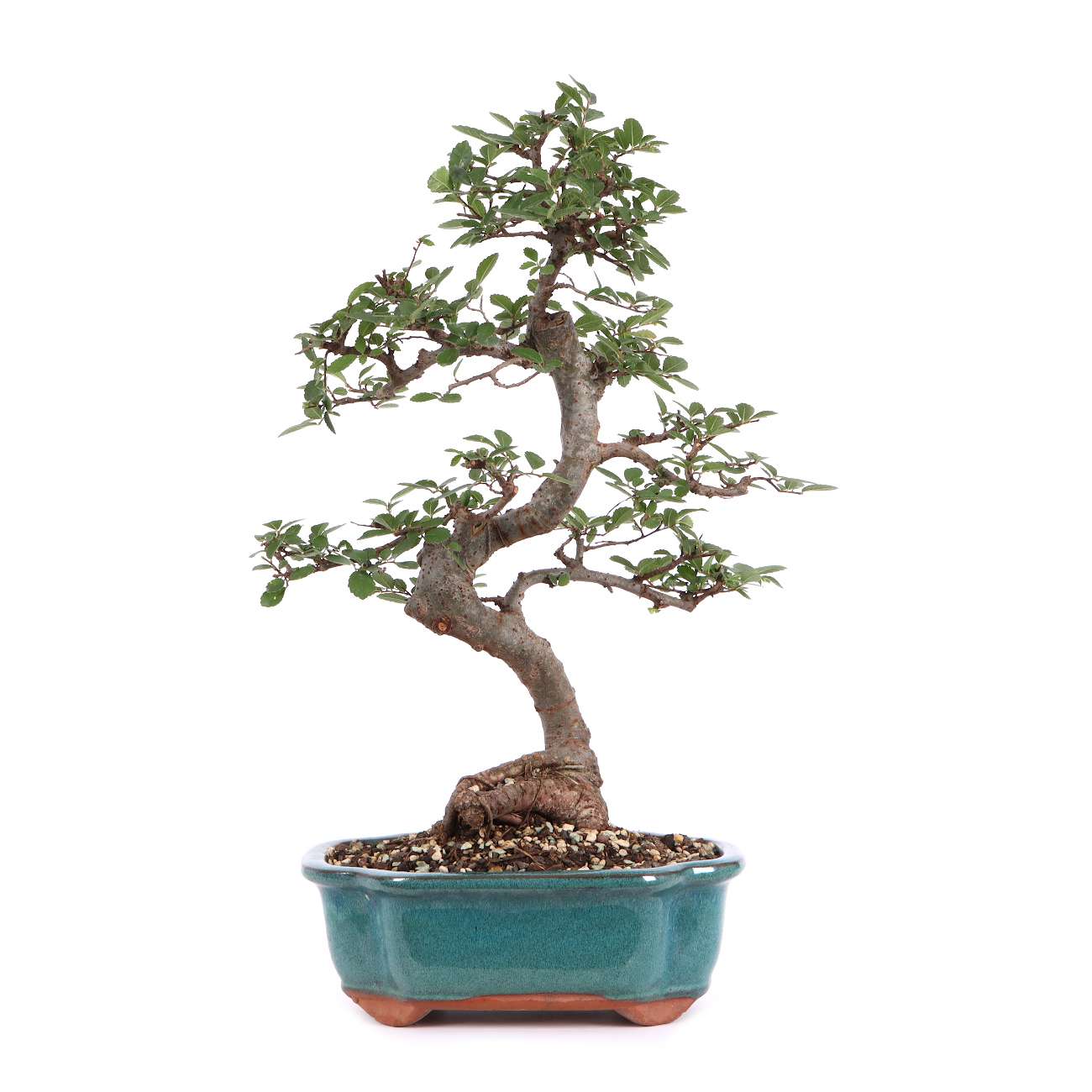 There is hardly any other plant that is so suitable for bonsai culture as the Chinese elm. It is very easy to cut and particularly easy to care for. It tolerates a wide variety of site conditions and is tolerant of cultural errors. Due to the small leaves, the proportions appear very harmonious within the design. This species can also be raised to expressive trees simply by pruning. The branches can also be wired without any problems. For healthy growth, we recommend a bright location (in summer also outdoors) as well as adequate irrigation and fertilization. New shoots are initially allowed to grow, but before they get too long or begin to harden, they are cut back. This leaves 2 to 3 new leaves on the shoot. In winter, the Chinese elm is best placed a little cooler (5 ° C). In warmer temperatures, it also grows in winter, which, due to the lack of light, usually leads to elongated and unsuitable shoots.