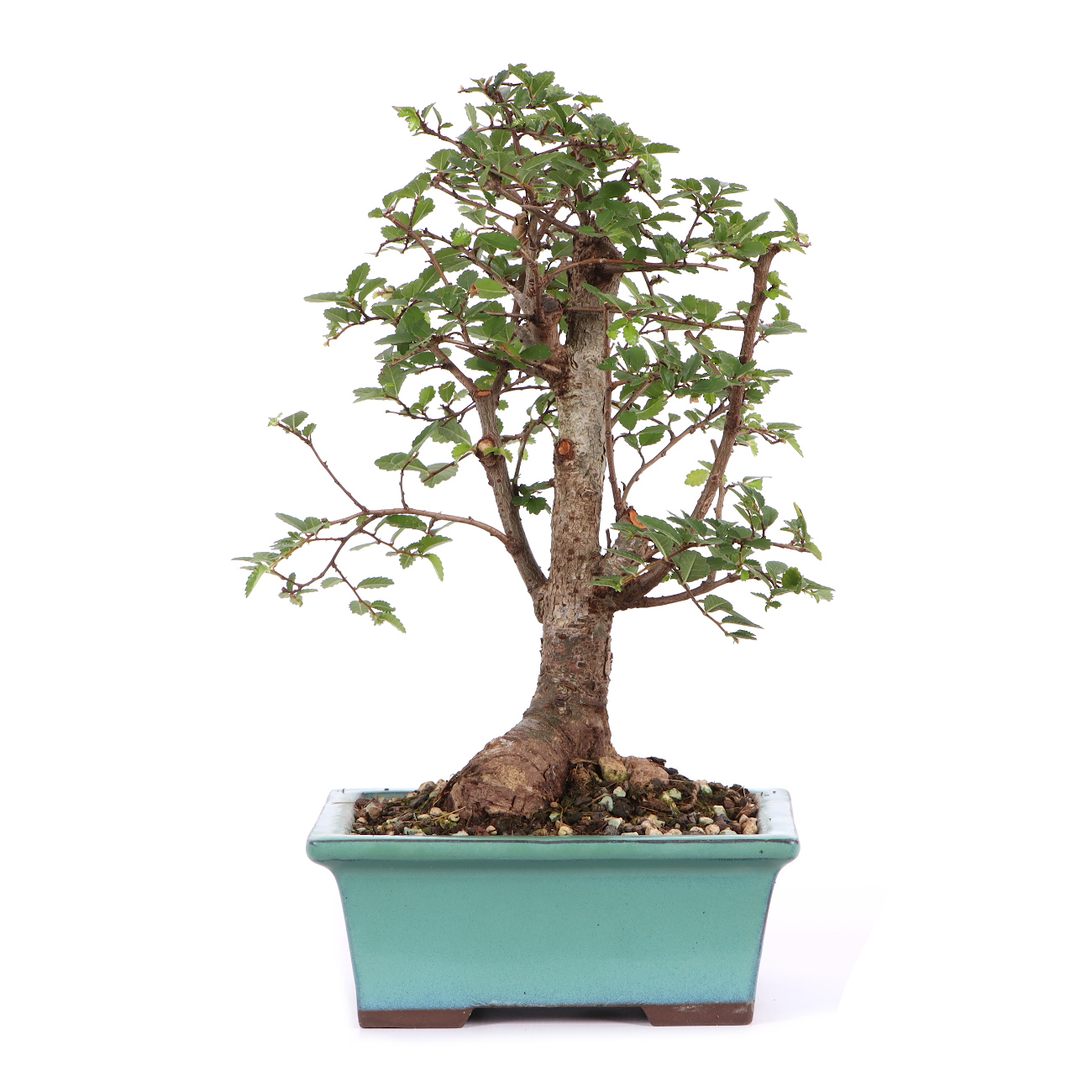 There is hardly any other plant that is so suitable for bonsai culture as the Chinese elm. It is very easy to cut and particularly easy to care for. It tolerates a wide variety of site conditions and is tolerant of cultural errors. Due to the small leaves, the proportions appear very harmonious within the design. This species can also be raised to expressive trees simply by pruning. The branches can also be wired without any problems. For healthy growth, we recommend a bright location (in summer also outdoors) as well as adequate irrigation and fertilization. New shoots are initially allowed to grow, but before they get too long or begin to harden, they are cut back. This leaves 2 to 3 new leaves on the shoot. In winter, the Chinese elm is best placed a little cooler (5 ° C). In warmer temperatures, it also grows in winter, which, due to the lack of light, usually leads to elongated and unsuitable shoots.