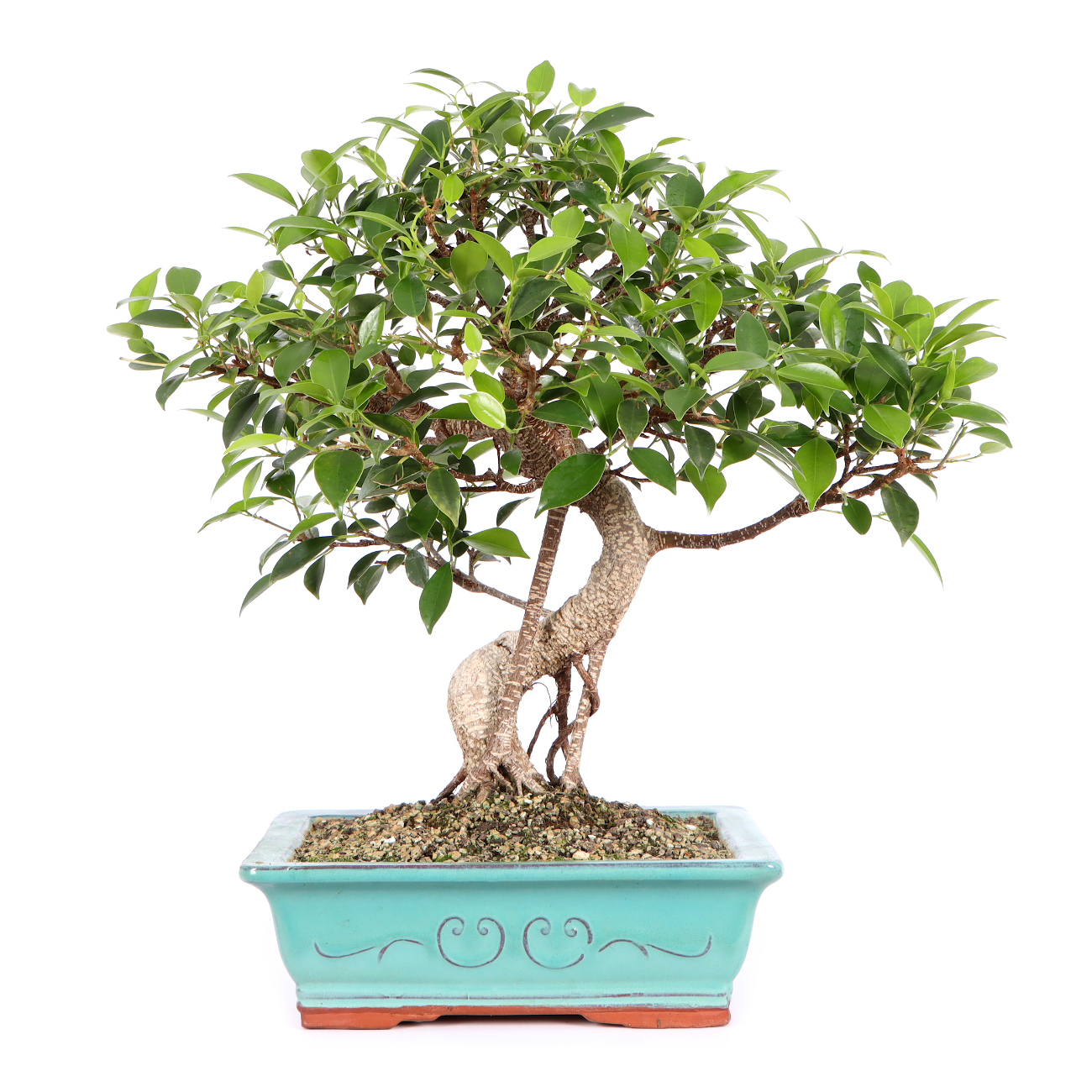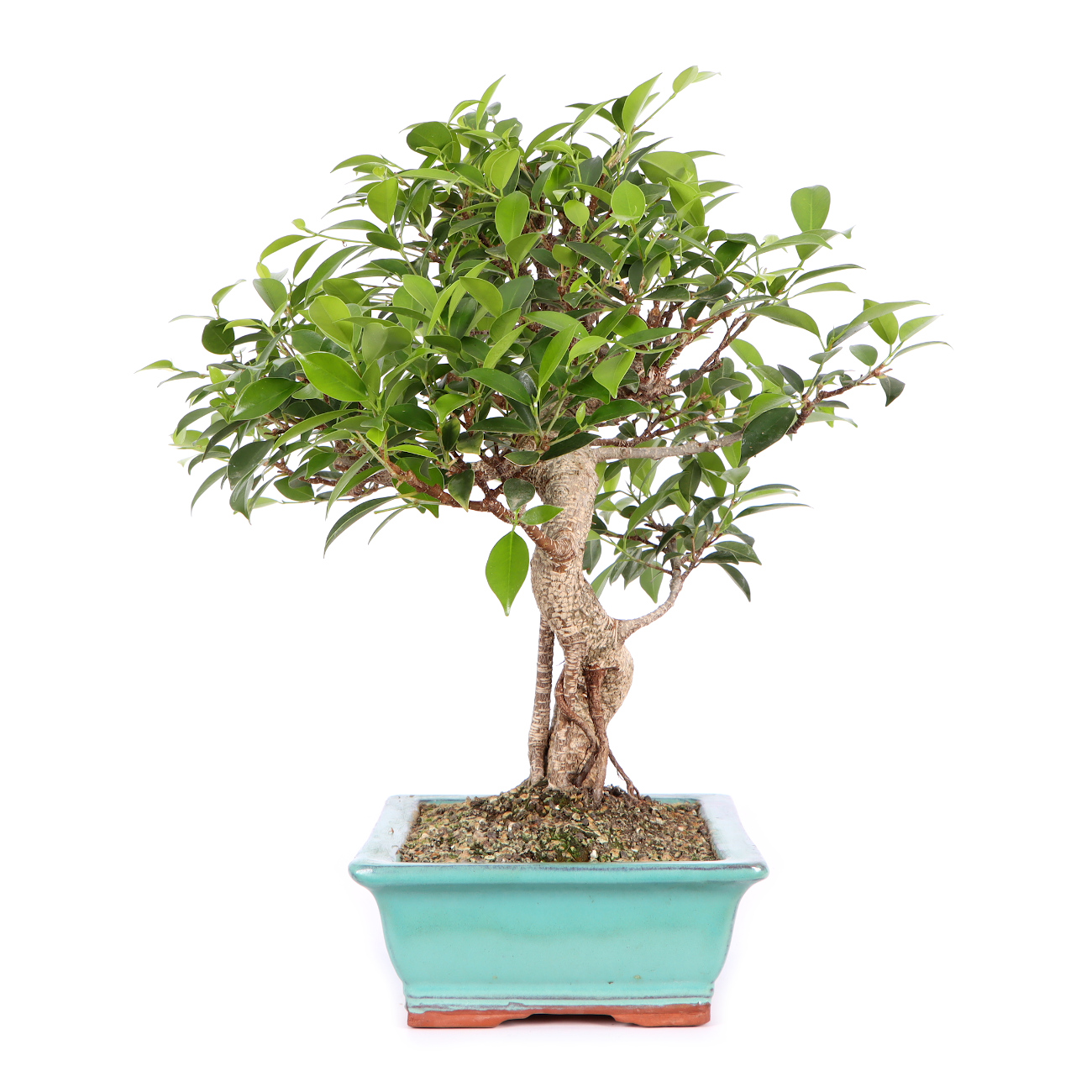 Compared to the species, the ‘Tiger Bark variety has a striking, tiger-like bark pattern. These white cork or lenticels as well as the numerous light brown aerial roots quickly give young plants a natural appearance. In addition, the leaves of this Ficus species are small and the growth is compact. All in all, this plant has very good properties as a bonsai.